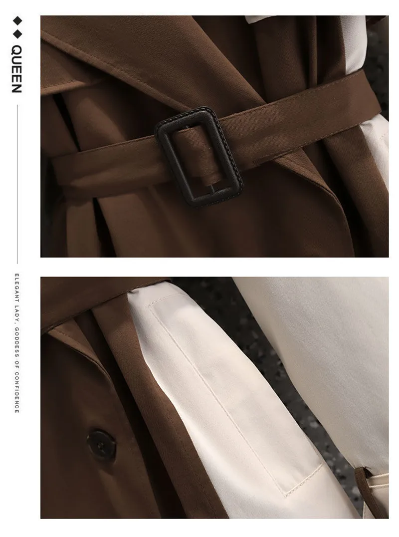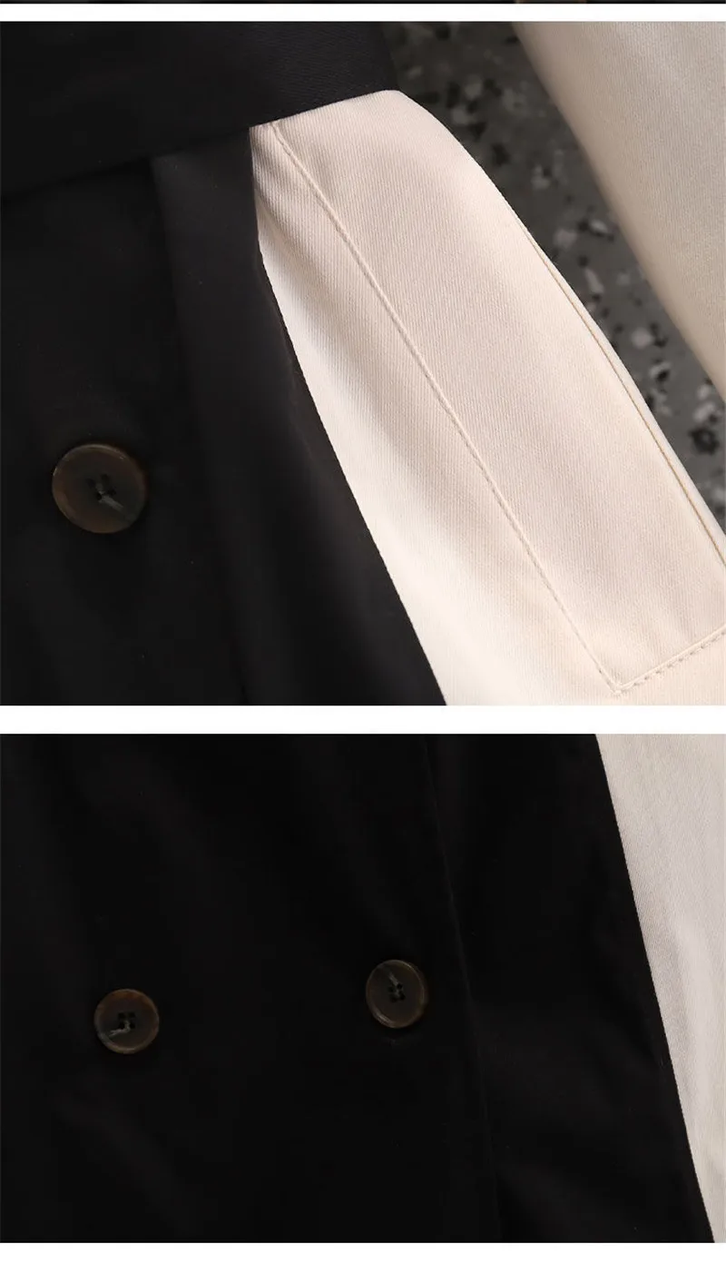 2024 Autumn Korean Mid-length Trench Coat Women Fashion Contrast Color Patchwork Spring Windbreaker Coat Female Windproof Jacket