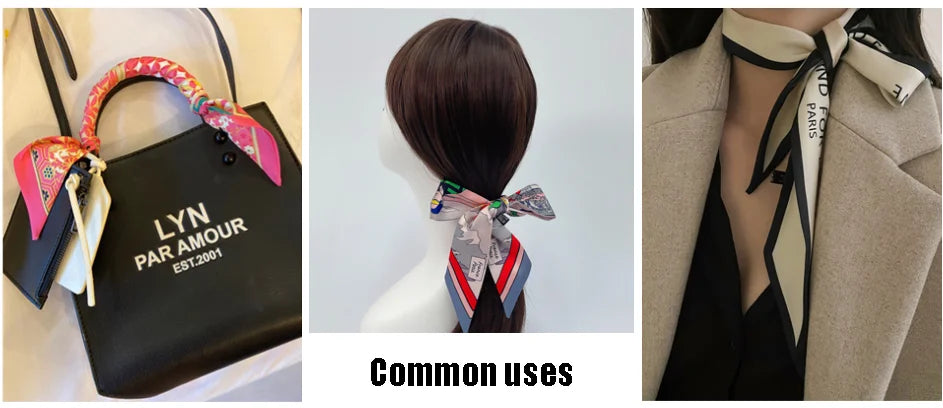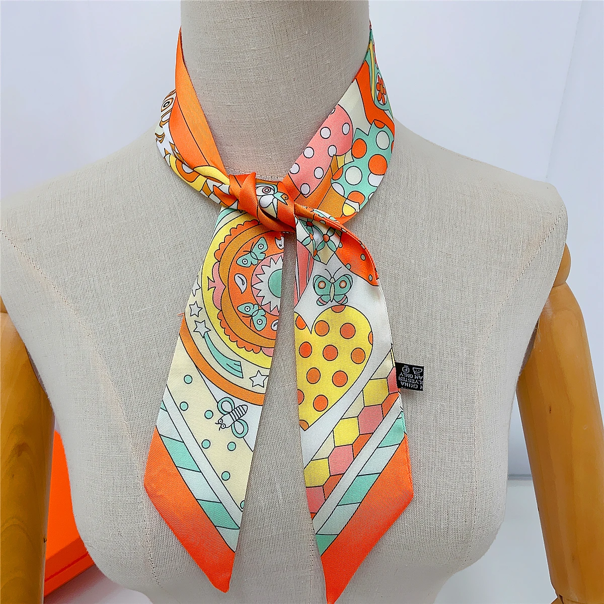 2024 Brand New Design Owl Scarf Women Luxury Silk Scarf Fashion Hair Headband Foulard Skinny Bag Scarves Neckerchief For Ladies