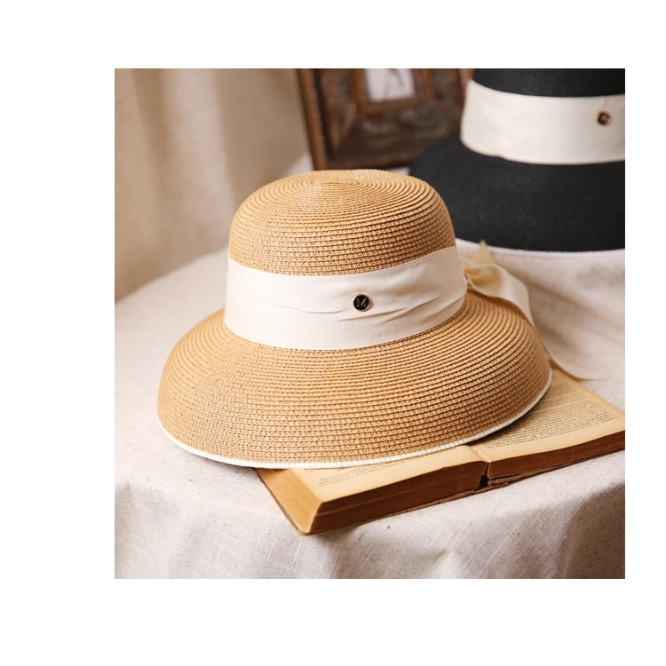 2024 Hepburn Sun Hat Women Summer Sunscreen Straw Hat Female Retro Bow French Elegant Hat Big Eaves Sunshade Beach Hat