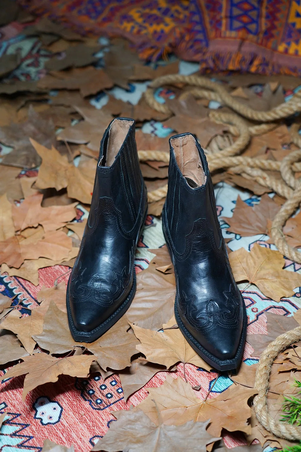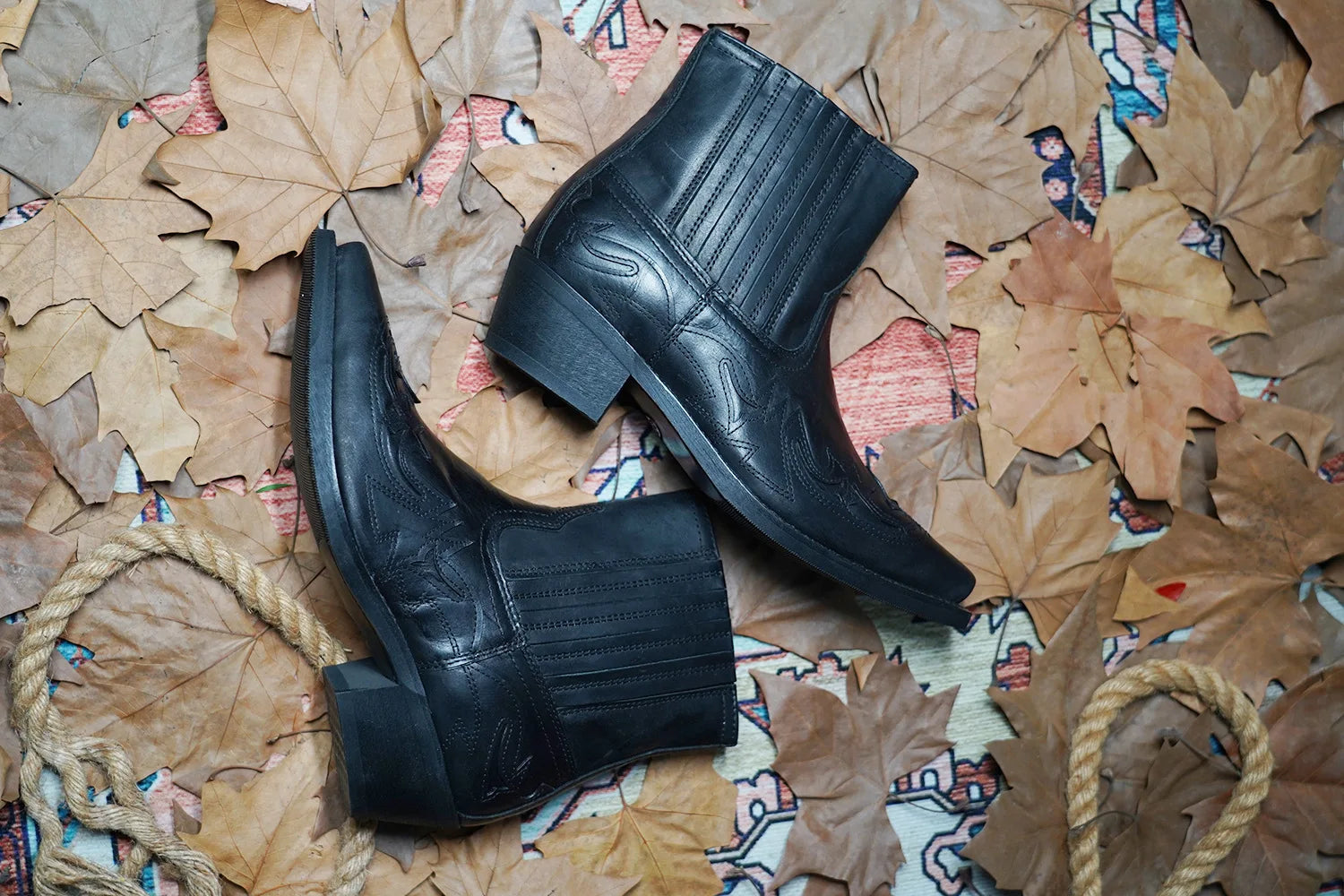 2024 Men's Western Cowboy Boots For Men Women Leather Ankle Boots Man Retro Embroidery Design Pointed Toe Shoes Plus Size 48