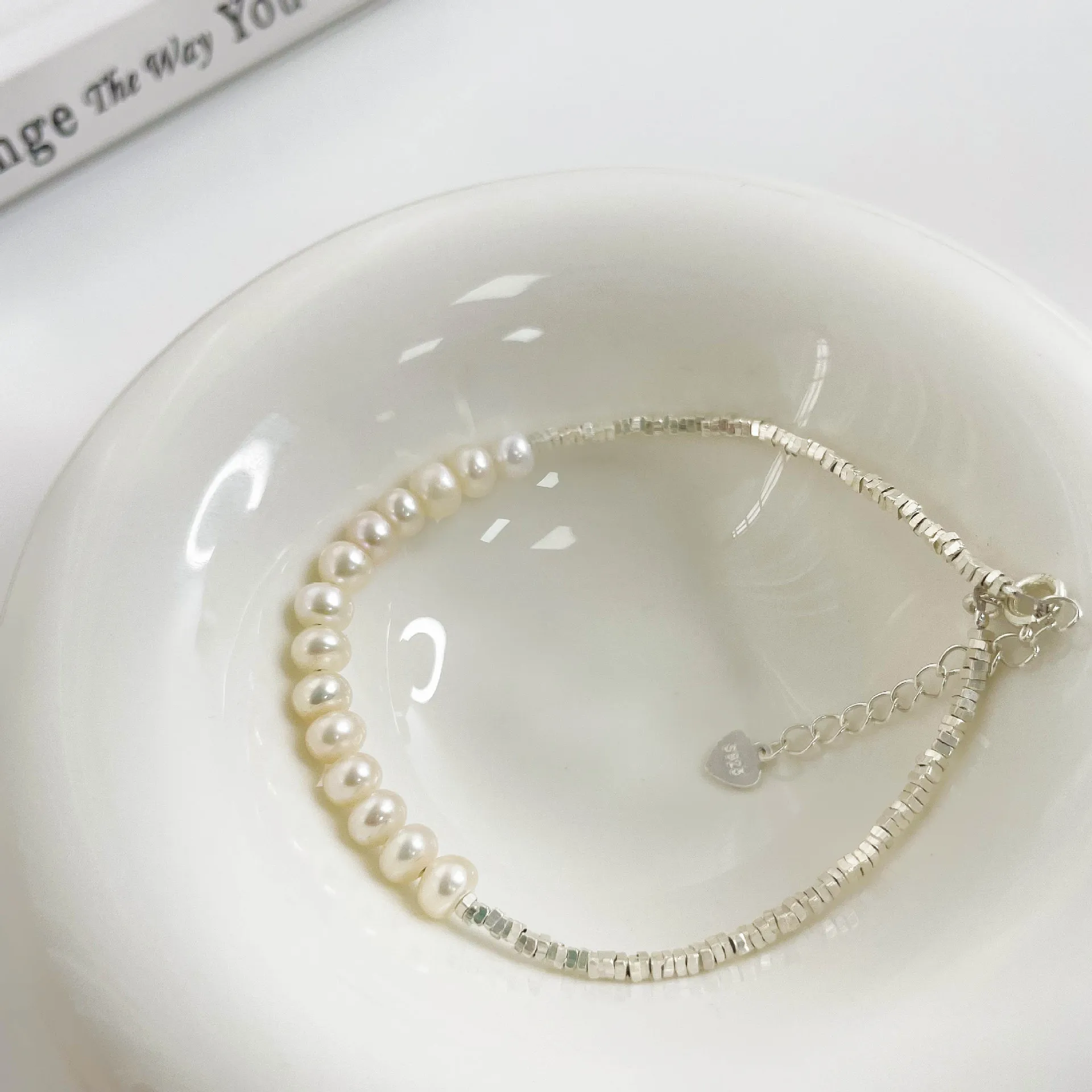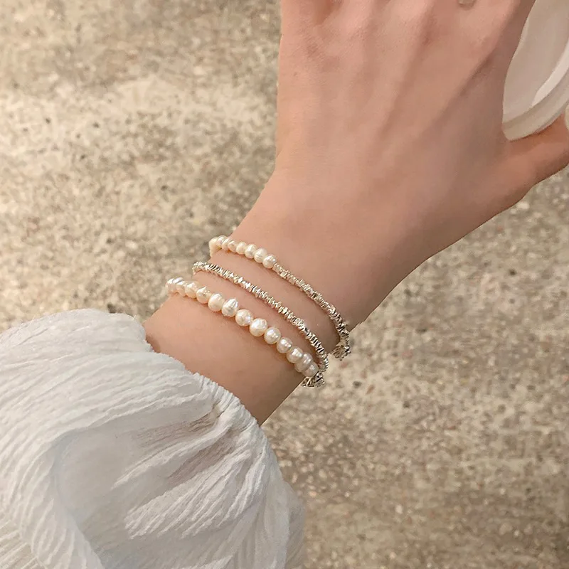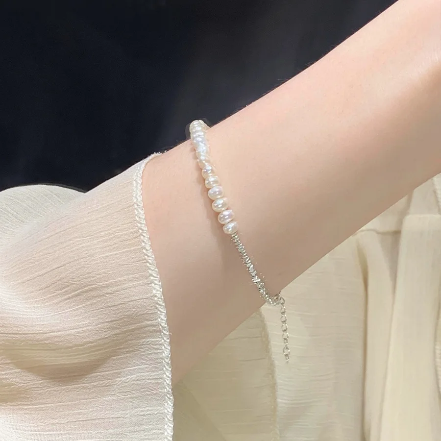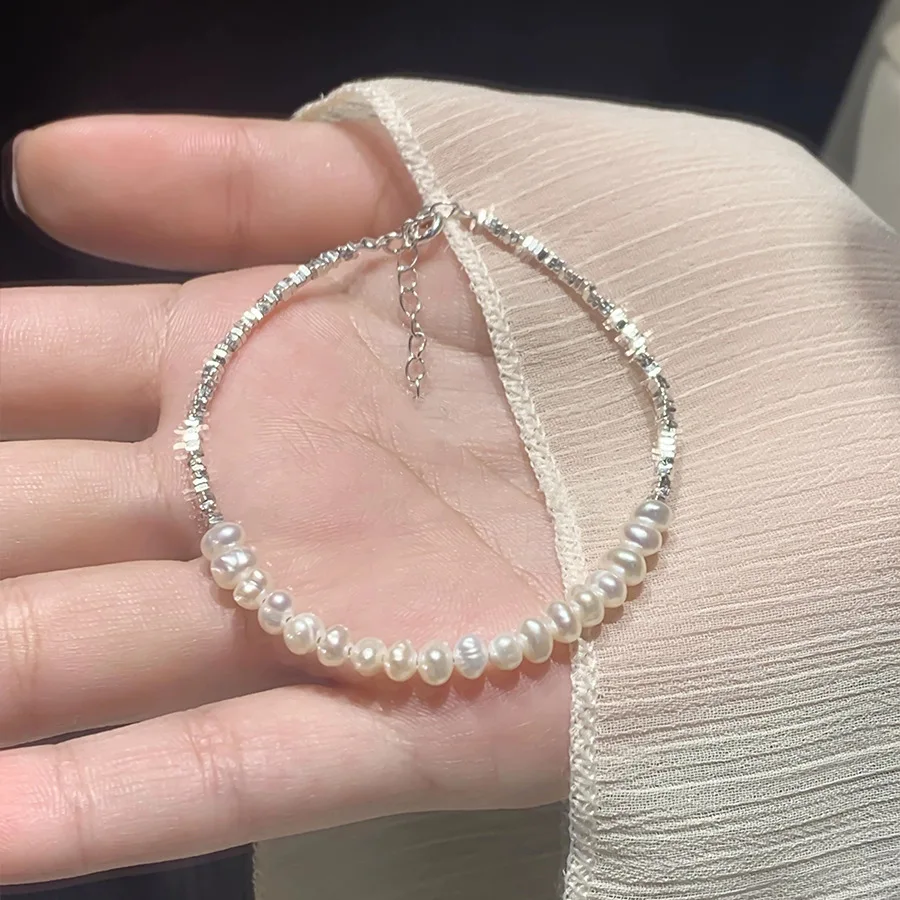 2024 New S925 Sterling Silver Double Layer Pearl Bracelet for Women Girl Design Bead Korean Jewelry Dropshipping Charm Bracelet