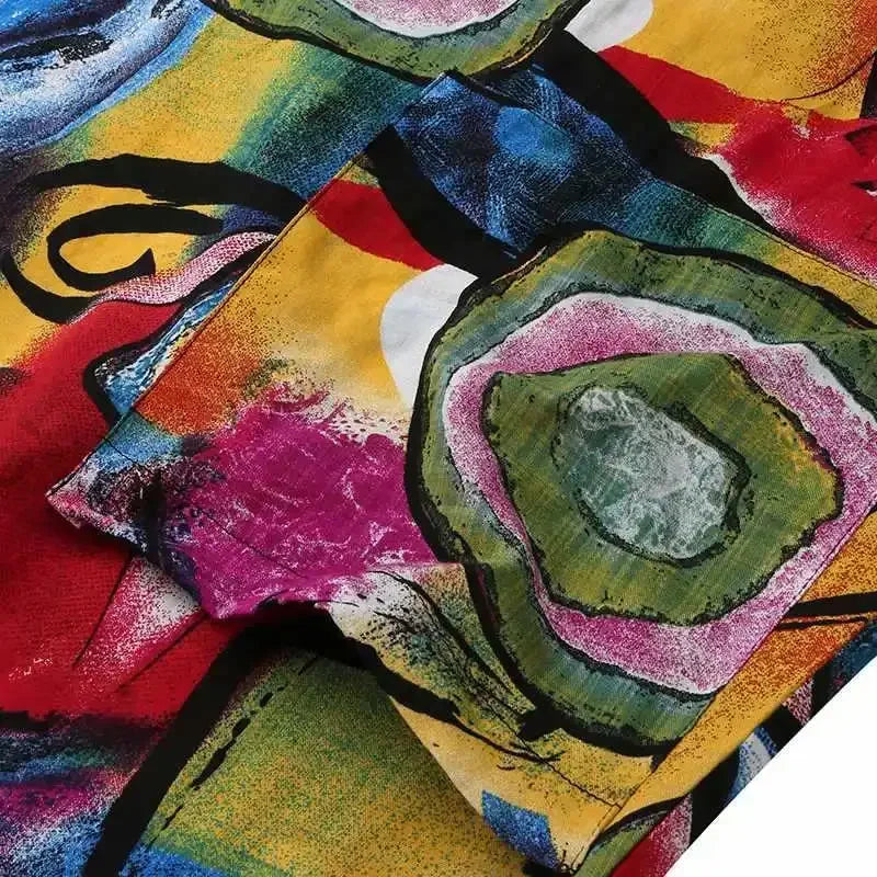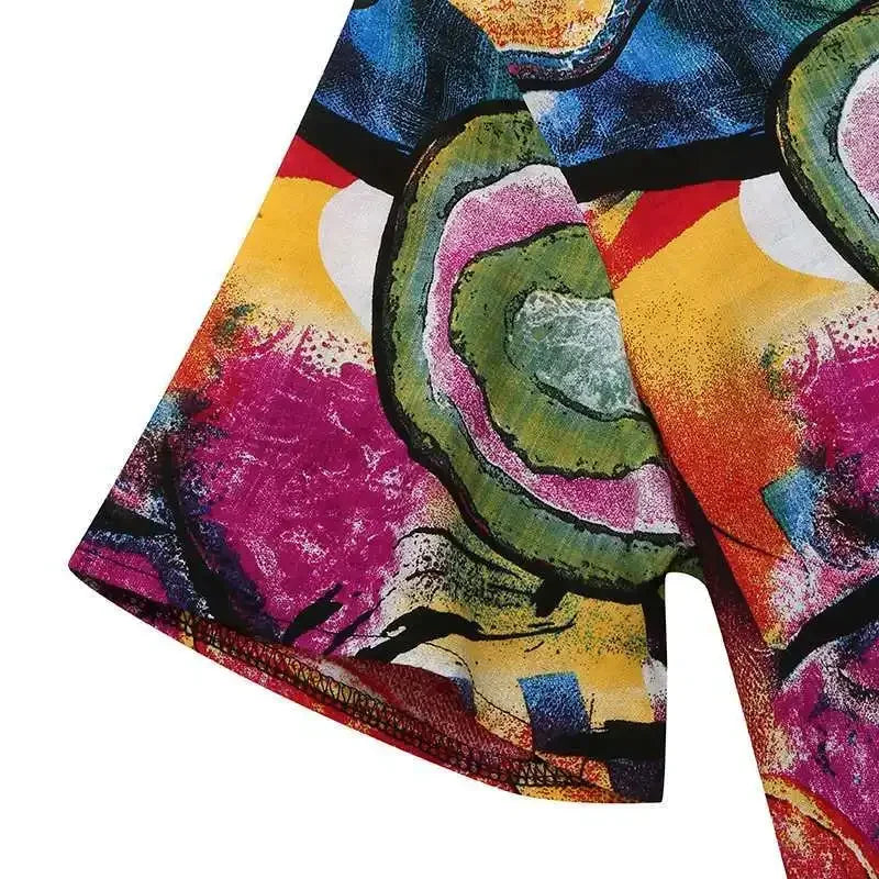 2024 New Short Sleeve Long Retro Print Dress Pocket Large Casual Dress