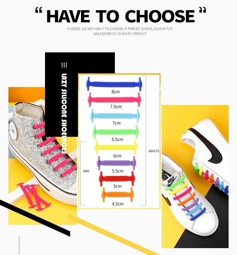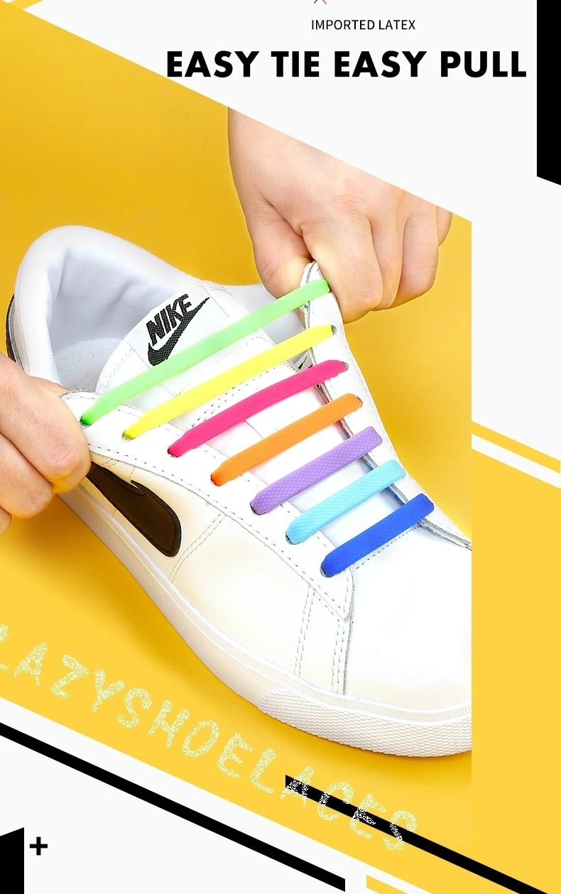 16pcs/lot Elastic Silicone Shoelaces For Shoes Creative Shoelace No Tie Shoe Laces For Men Lacing Shoes Rubber Shoelaces