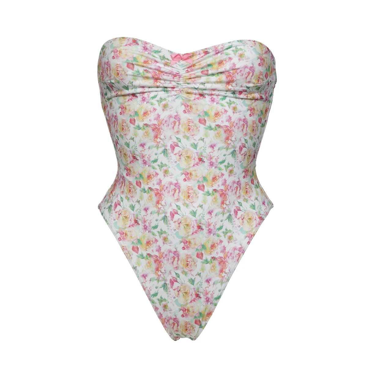2024 New Tube Top One Piece Swimsuit Women Sexy Flowers Print Backless Swimwear Tropical Summer Beachwear Bathing Suit Bodysuit