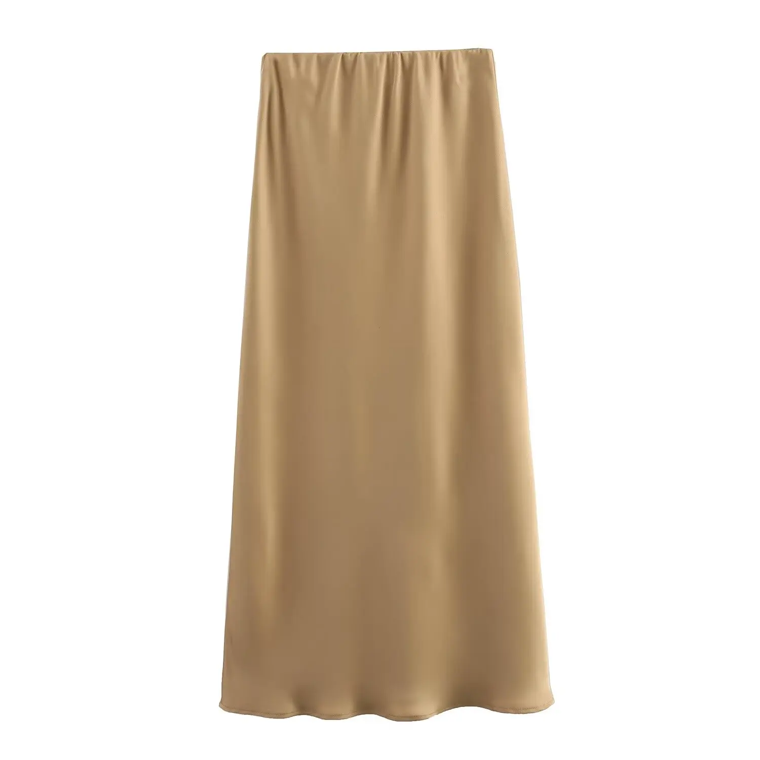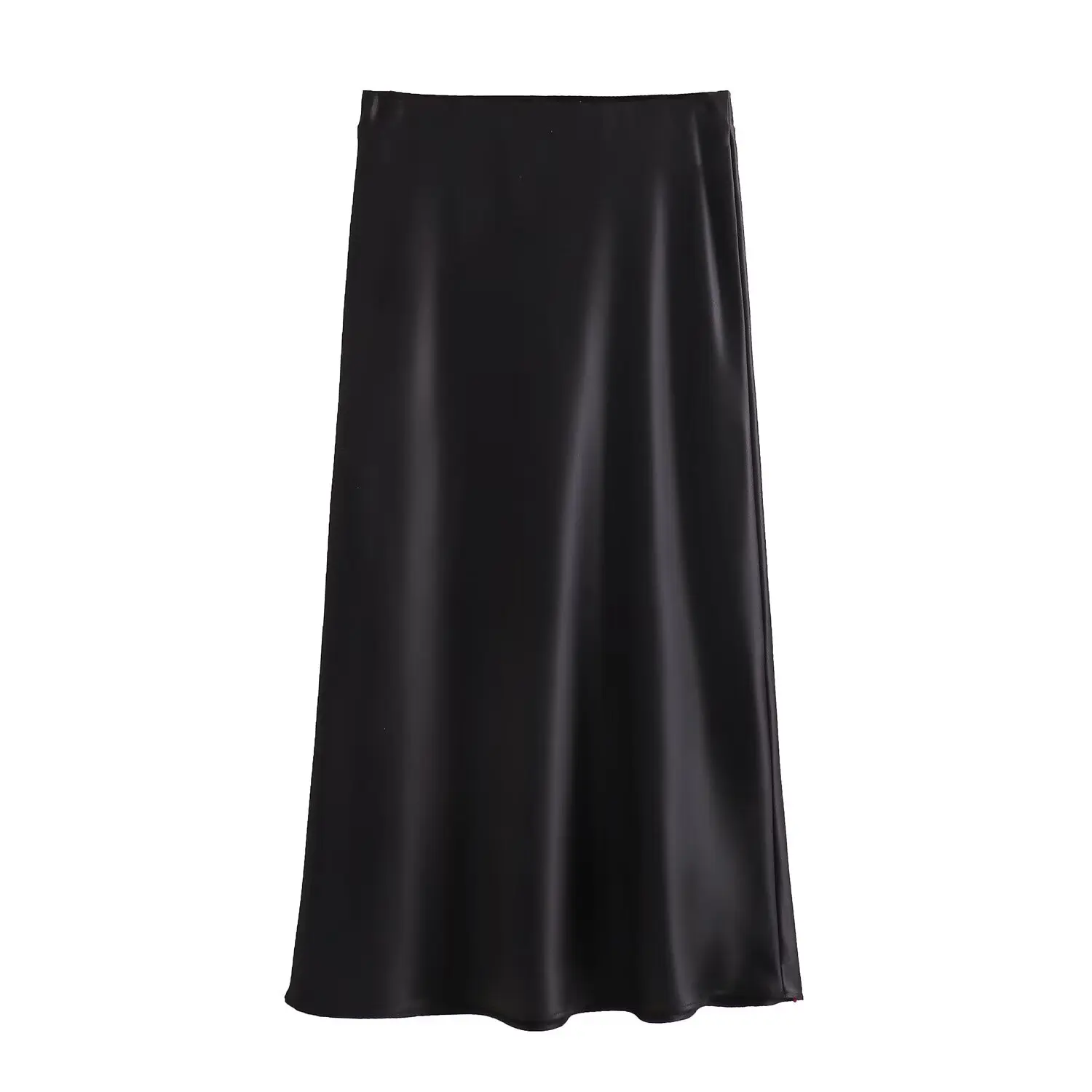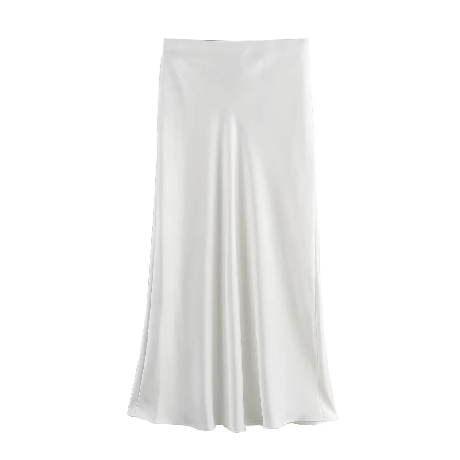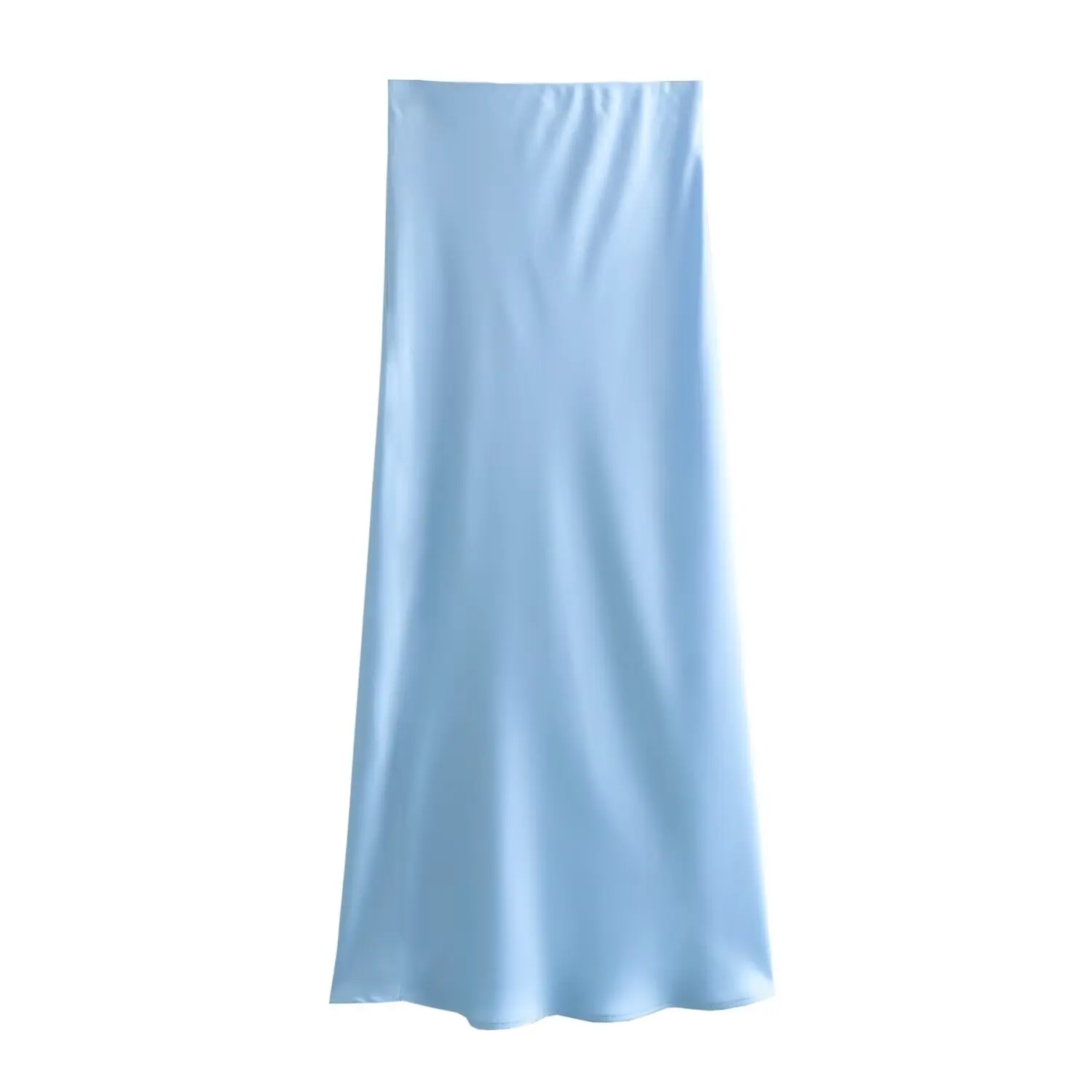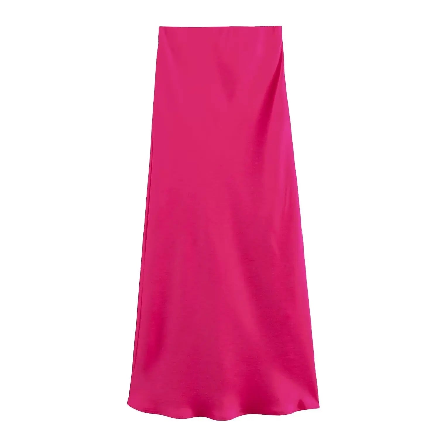 2024 New Women's European And American Style Fashion Silk Satin Texture High Waist Skirt Street Style Elegant Mid-length Skirt