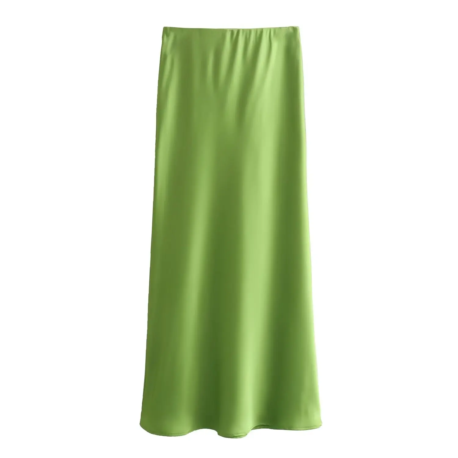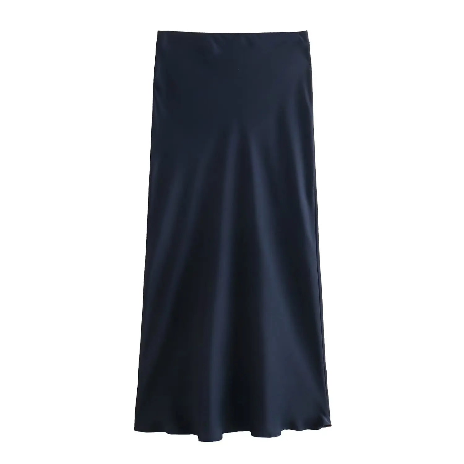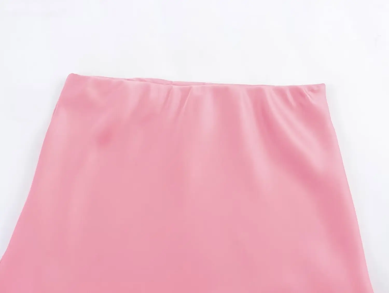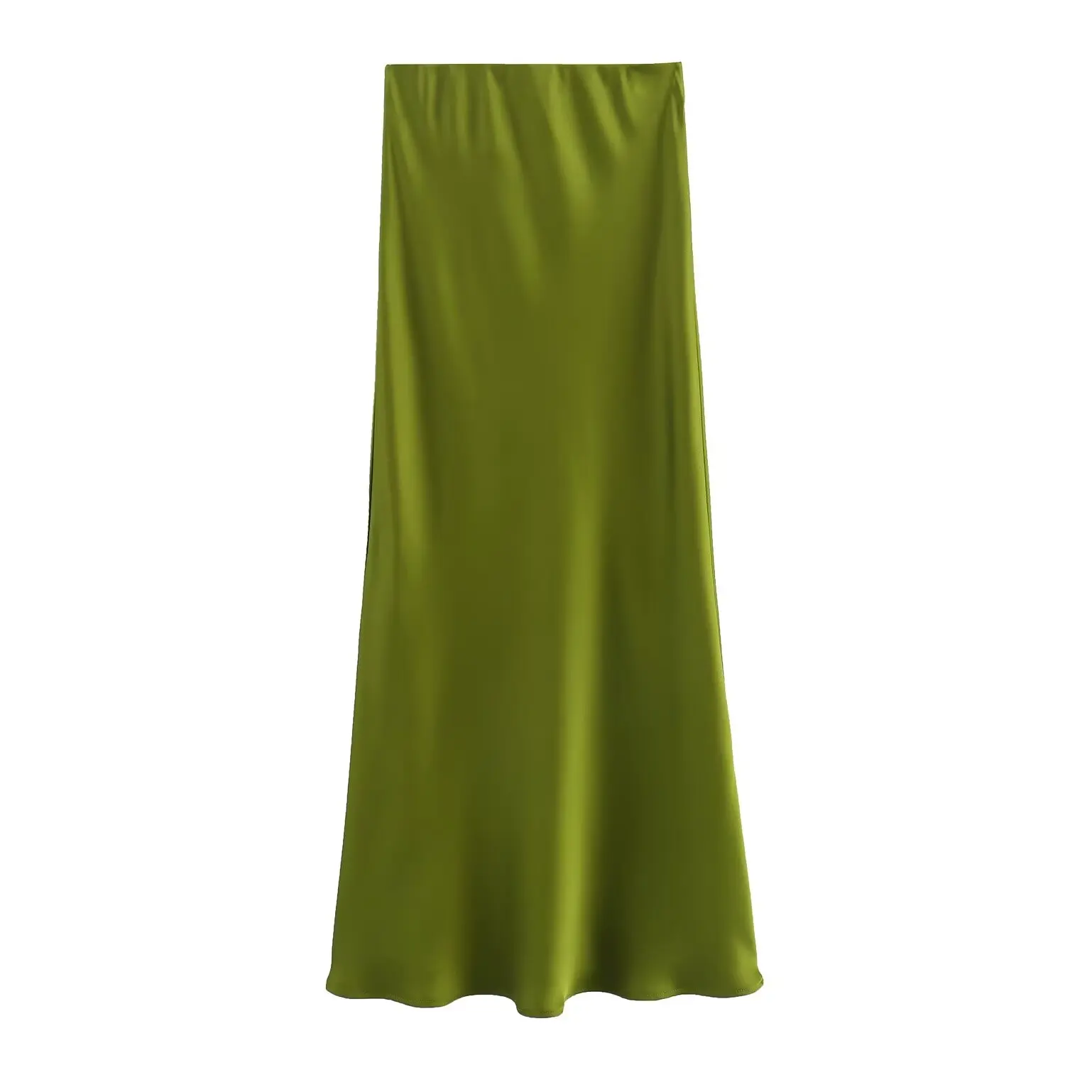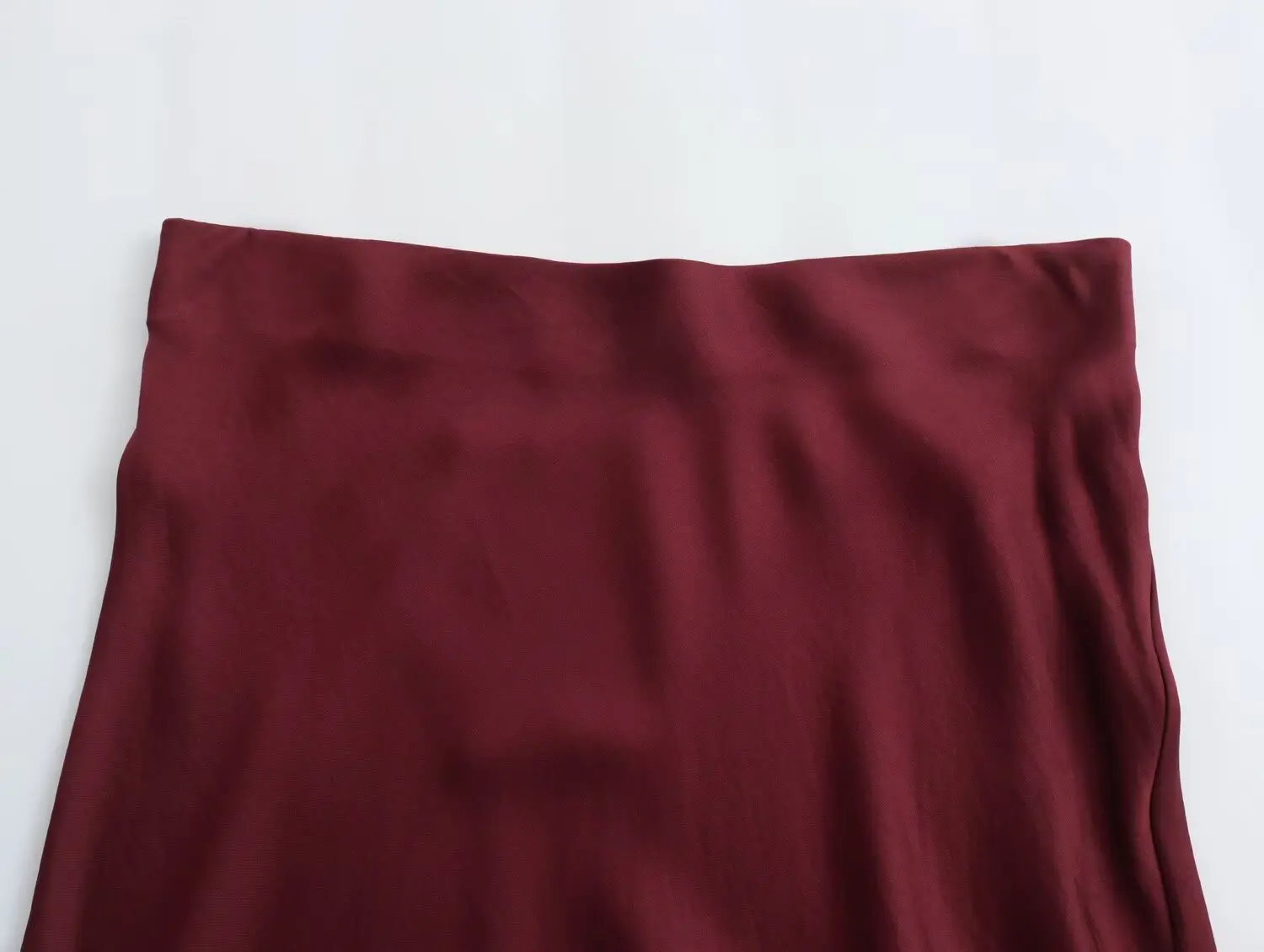 2024 New Women's European And American Style Fashion Silk Satin Texture High Waist Skirt Street Style Elegant Mid-length Skirt