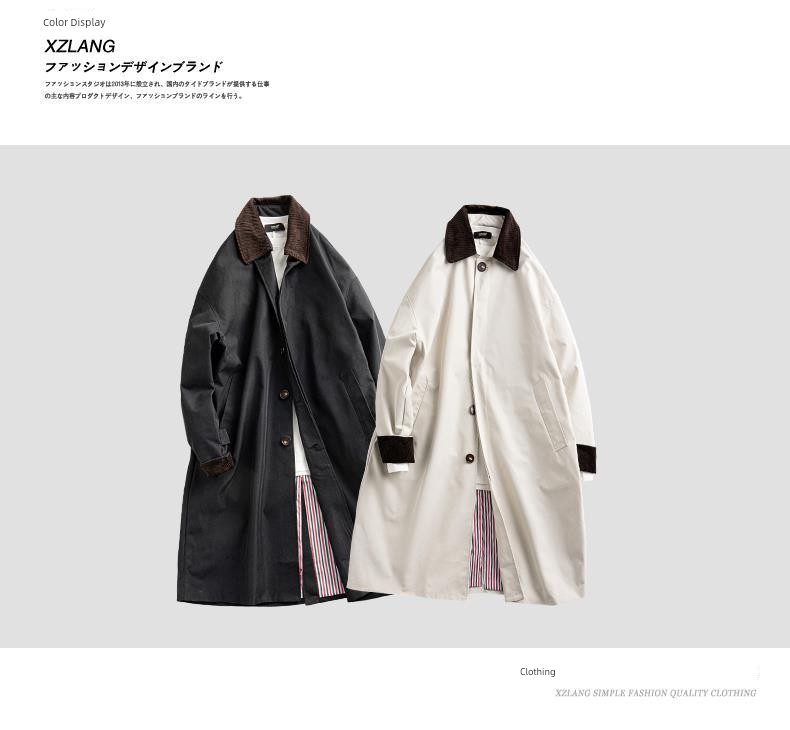 2024 Spring & Fall New Arrival K-style Loose Lapels Men's Mid-Length Trench Coat Japanese-Style Retro Casual Korean Coat Men