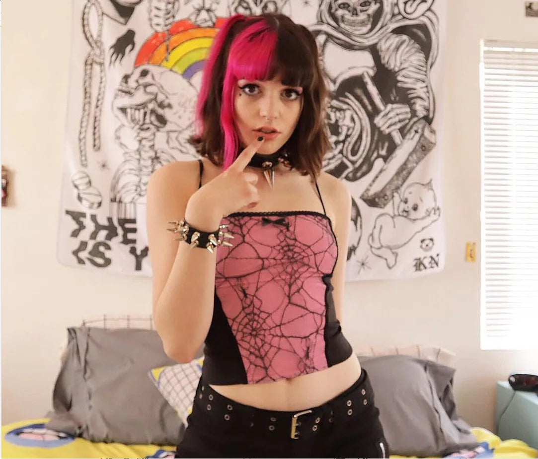 2024 Vintage Gothic Cami Tops Women Mesh Spider Net Lace Tank Vest Female Summer Sexy Club Crop Tops Harajuku 2000s clothes