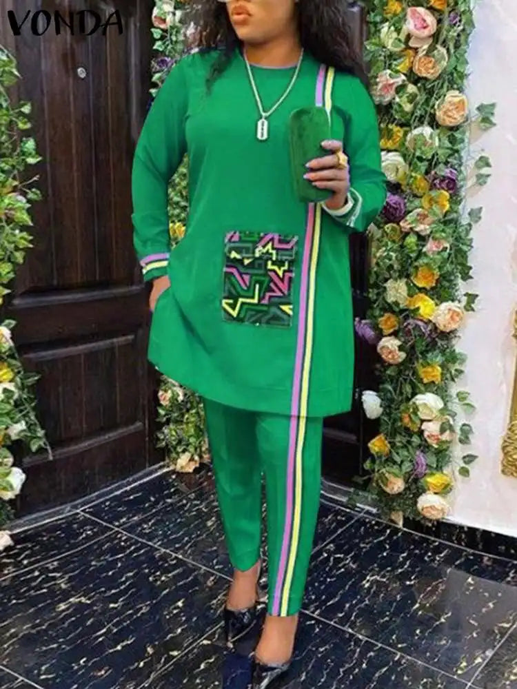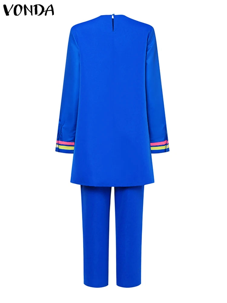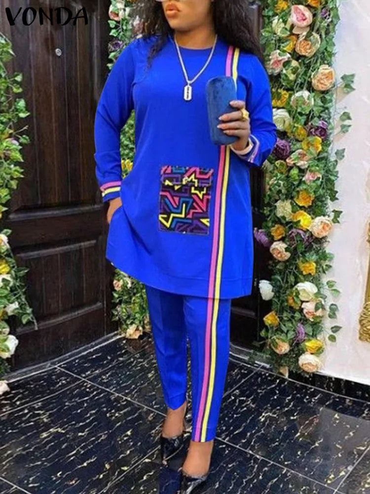 2024 VONDA Bohemian Vintage Printed Pant Sets Autumn Women Elegant Suits Fashion Long Sleeve Tops and Trousers Casual Loose 2PCS