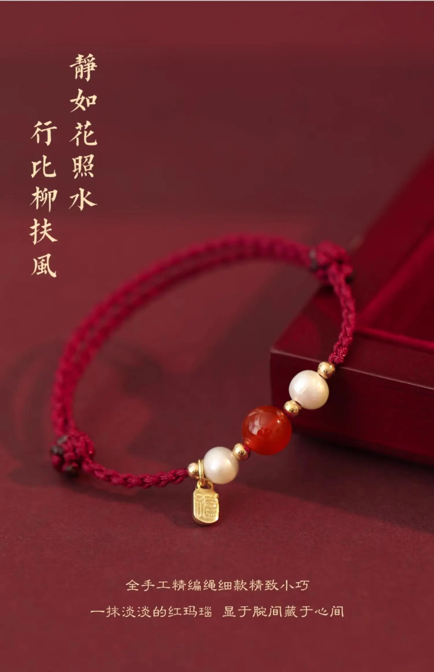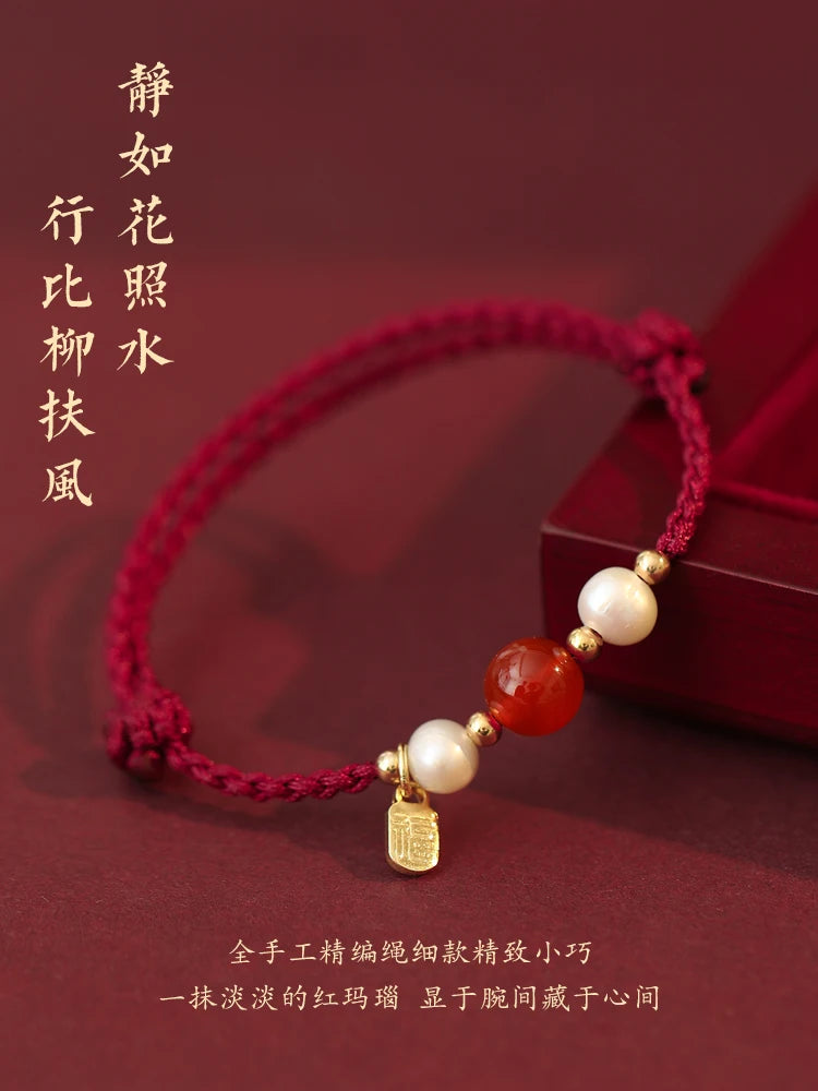 2024 Year of The Dragon Amulet Red Agate Red Rope Bracelet Get Rich Female Good Luck Pearl Beads Braided Rope HandRope Couple