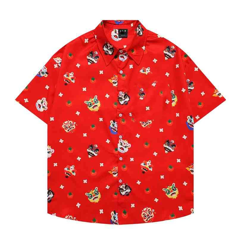 2025 New Fashion Summer Hawaiian Shirts Men's Holiday Casual Chinese style Print Graphic T-shirt Men Clothing Lapel Short Sleeve