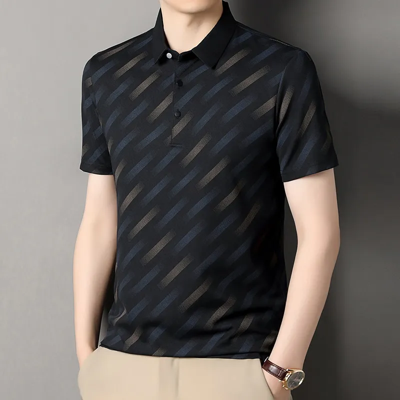 2025 New Men's Business Casual Short Sleeved Printed Polo Shirt Fashionable Breathable Comfortable and Versatile Top