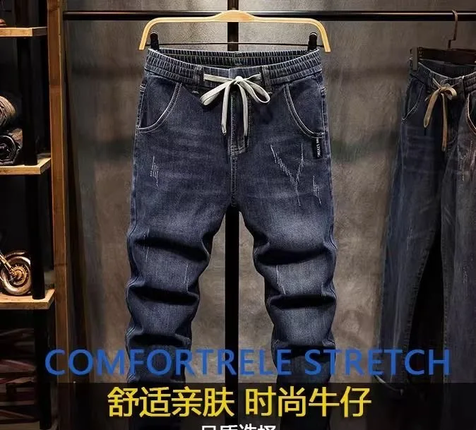 2025 Spring and Autumn New Fashion Trend Elastic Straight Leg Jeans Men's Casual Loose Comfortable High Quality Denim Pants 36