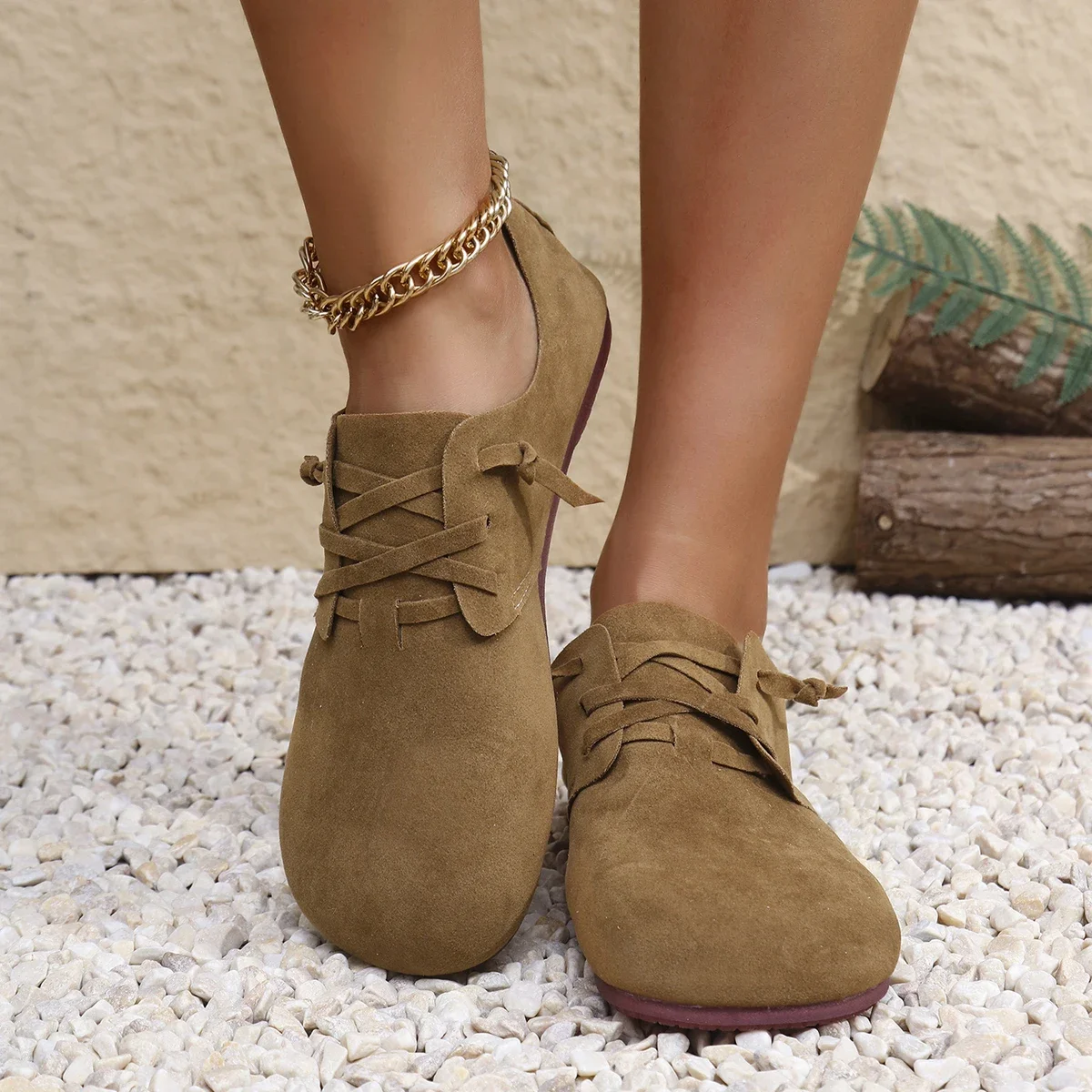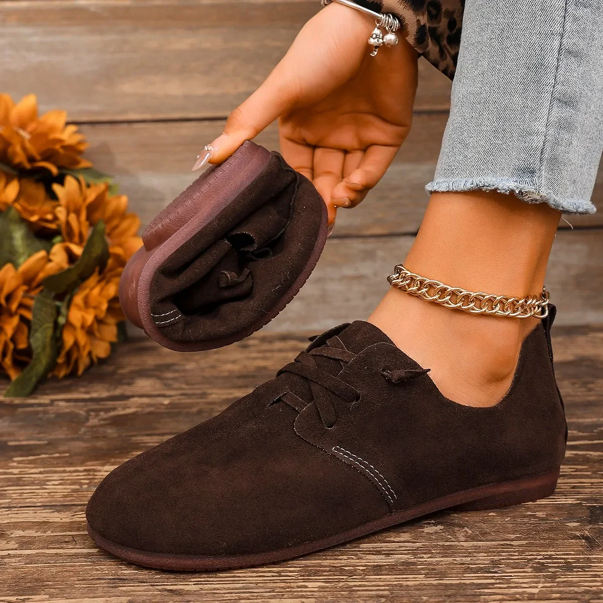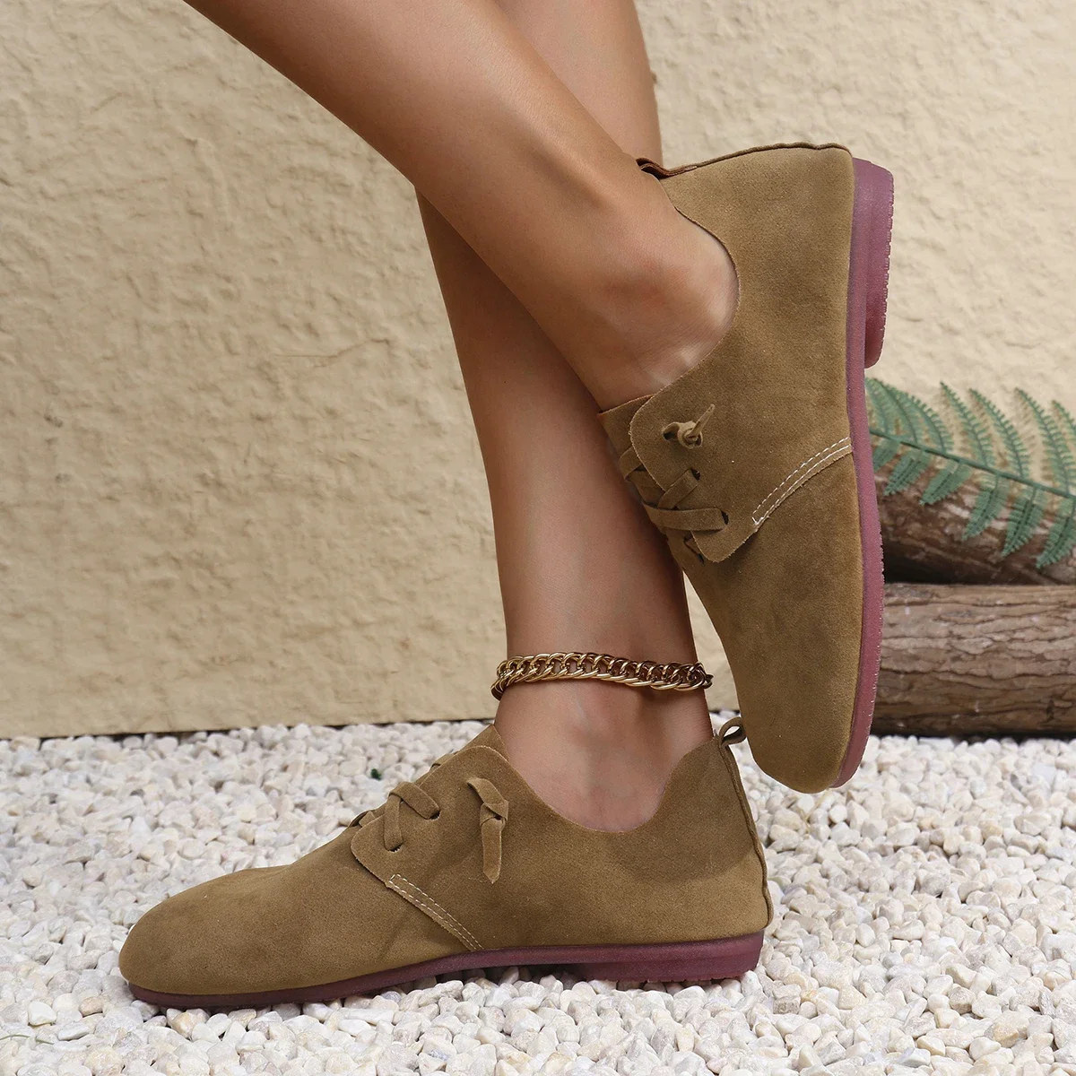 2025 Spring New Women's Flat Shoes Fashion Round Toe Flats Lightweight Lace-up Single Shoes Outdoor Casual Shoes Size 36-43