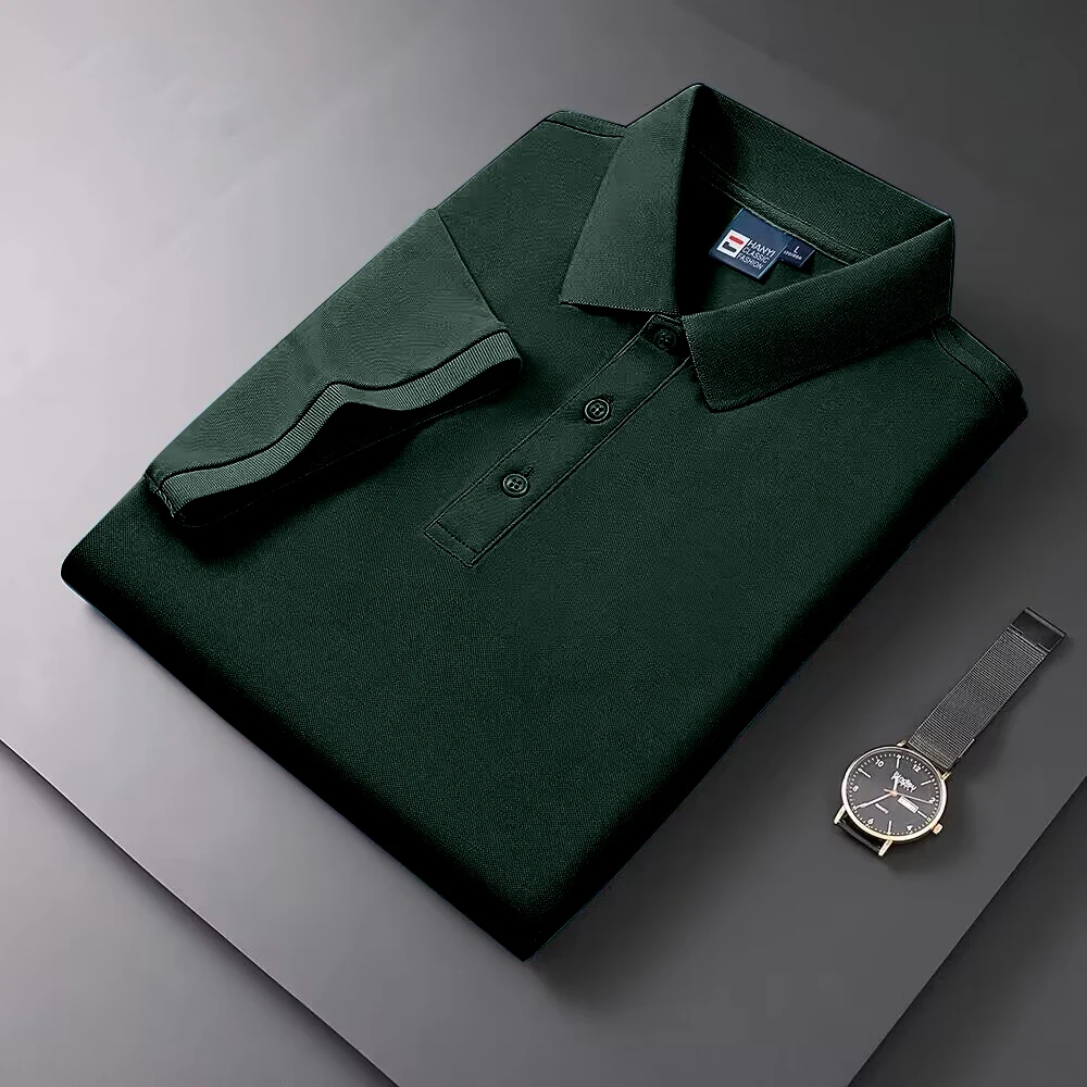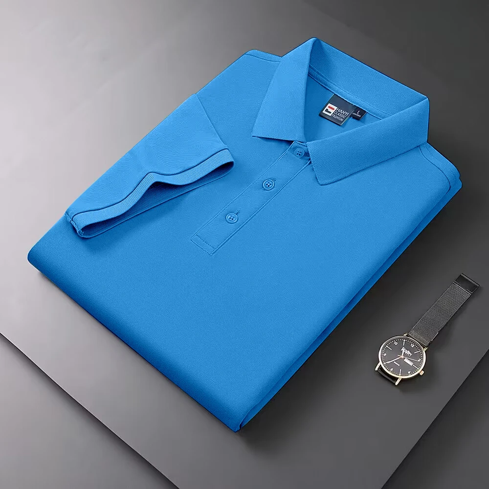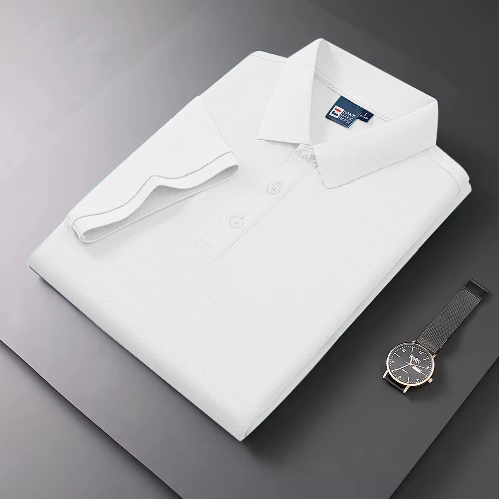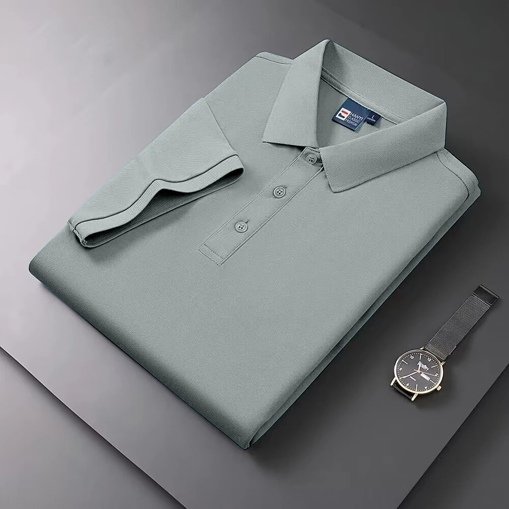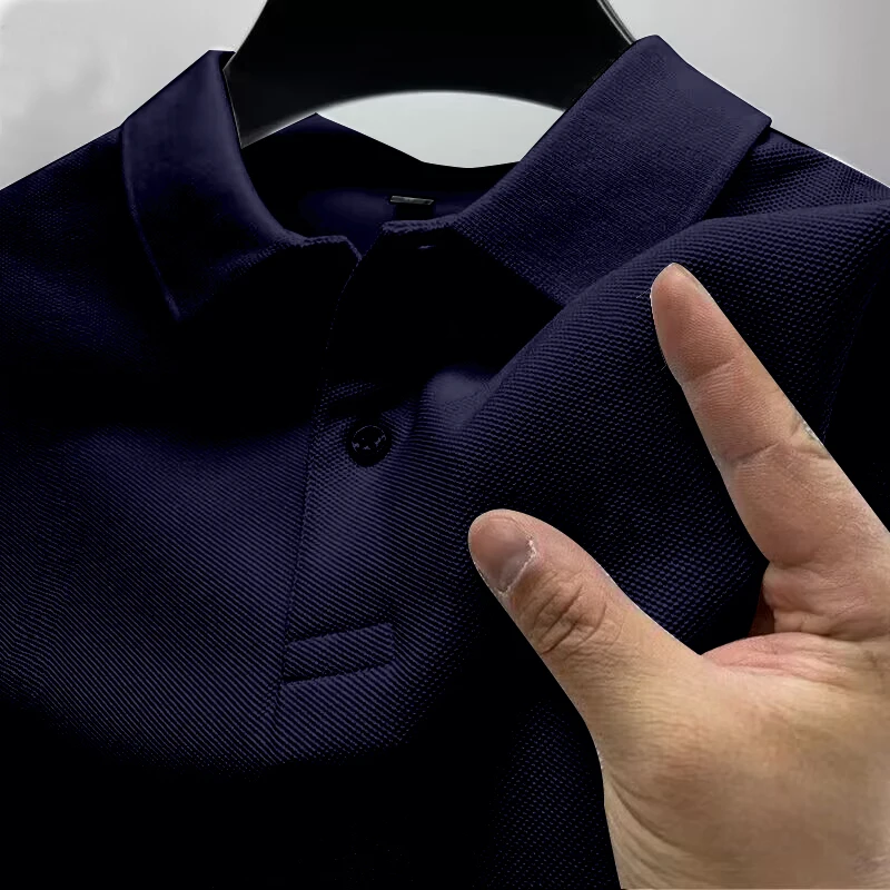 2025 Summer New Men's Short sleeved Solid Color Polo Shirt Breathable and Comfortable Elastic Top Casual Business New Style