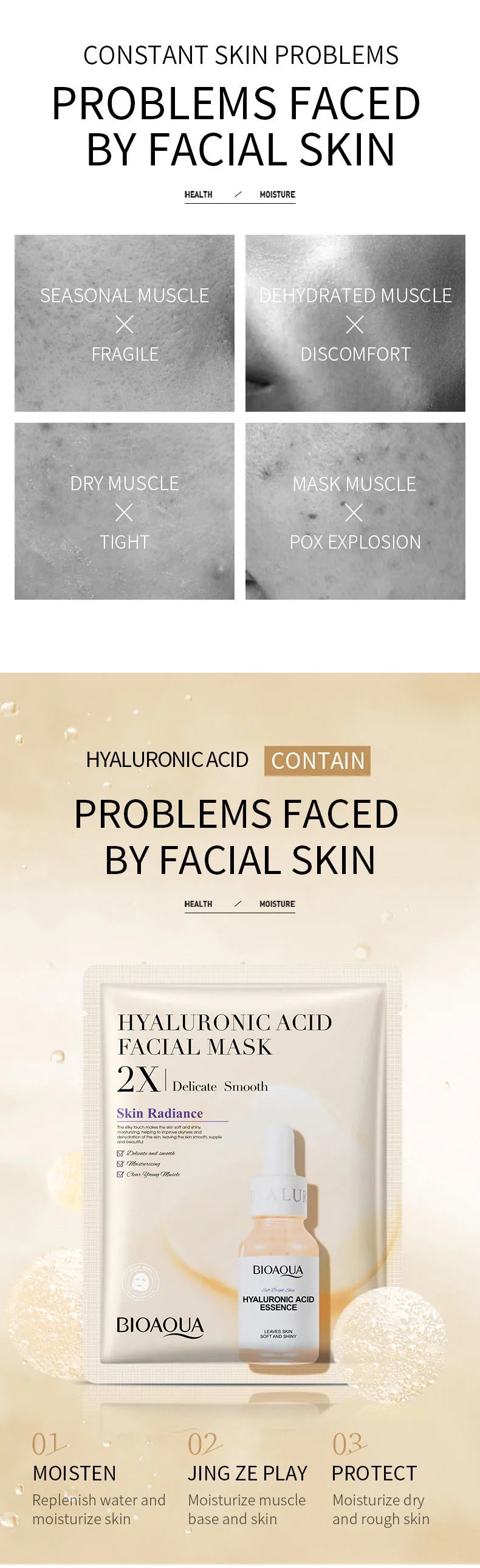 20pcs BIOAQUA Centella Collagen Face Mask Moisturizing Refreshing Sheet Masks Hyaluronic Acid Facial Mask Skin Care Products