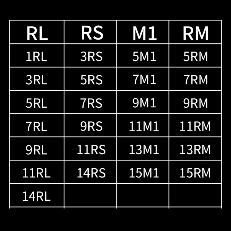 Optional Types: 1RL/3RL/5RL/7RL/9RL/11RL/14RL/5RM/7RM/9RM/11RM/13RM/15RM/5M1/7M1/9M1/11M1/13M1/15M1/3RS/5RS/7RS/9RS/11RS/14RS