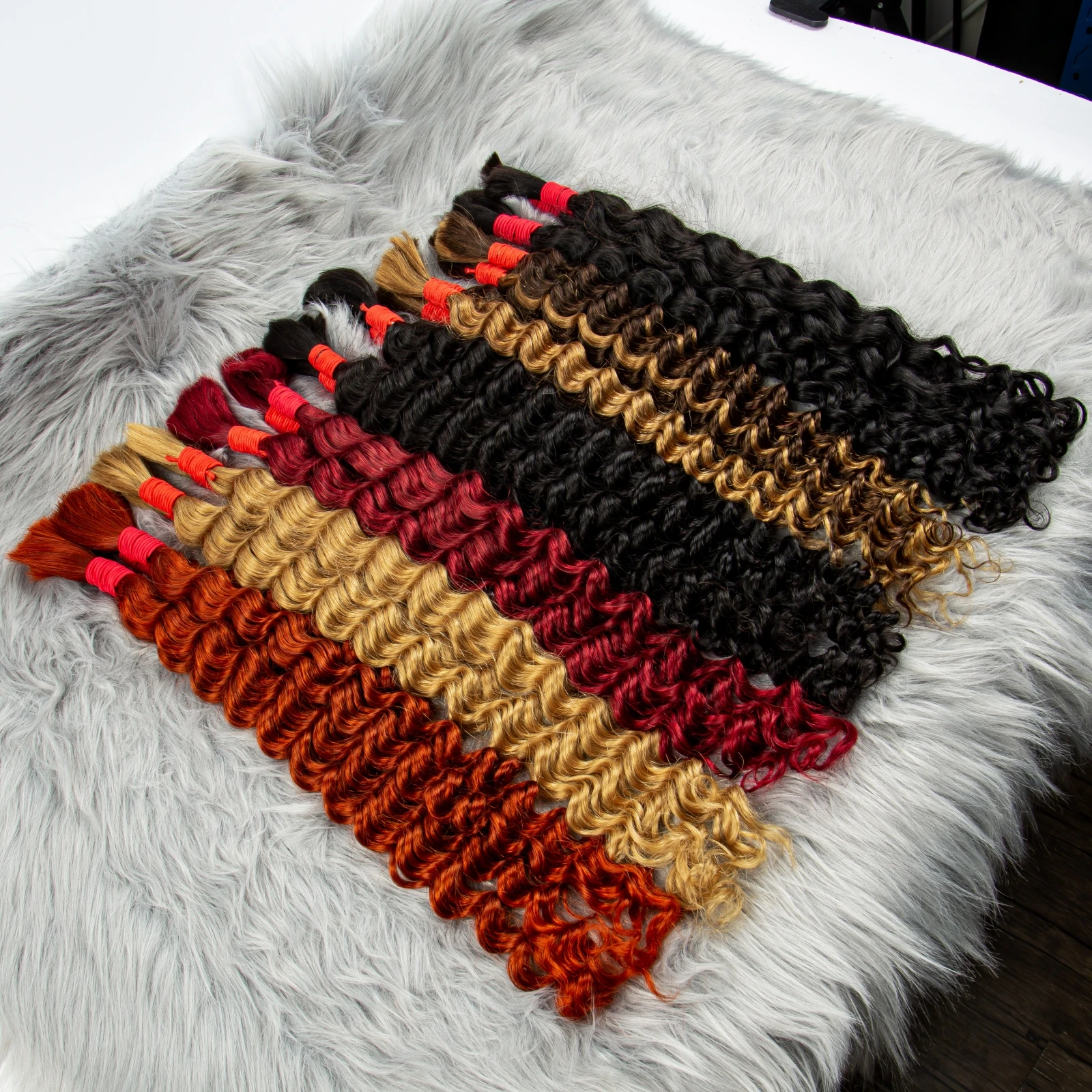 22Inch 100% Human Hair Bundle No Weft Deep Wave Curly Brazilian Virgin Hair for Boho Braid Burgundy 1 2 3 Bundles Hair for Women