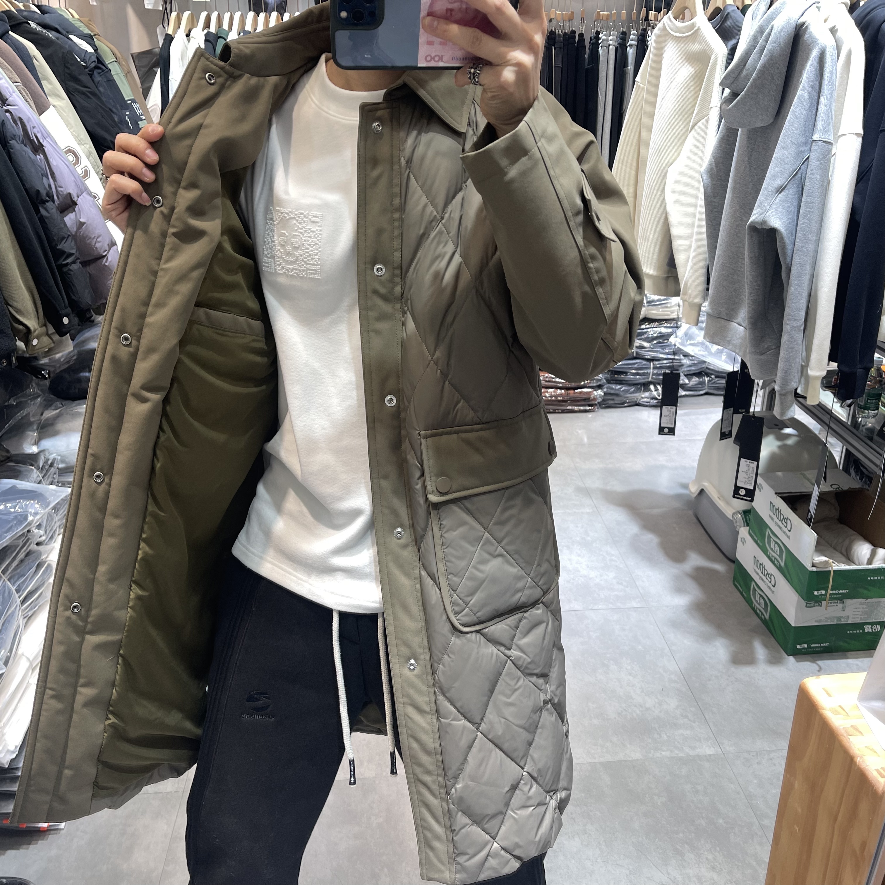 23 Winter Thickened New Duck down Diamond Lattice Mid Length Long Length Trench Coat down Jacket Trendy Loose Retro Warm Outwear