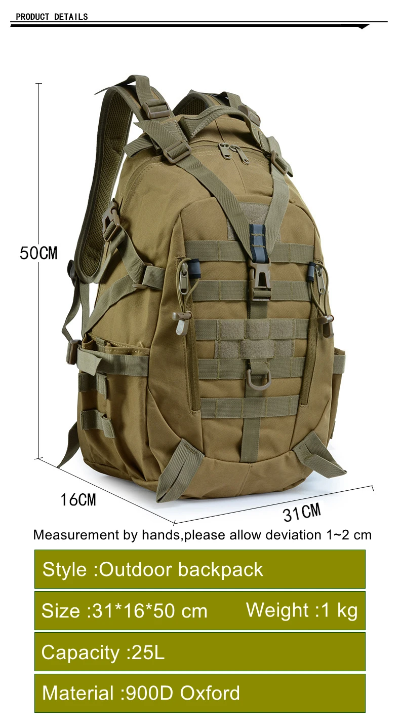 25L 900D Nylon Waterproof Backpack Outdoor Military Rucksacks Tactical Sports Camping Hiking Trekking Fishing Hunting Bag