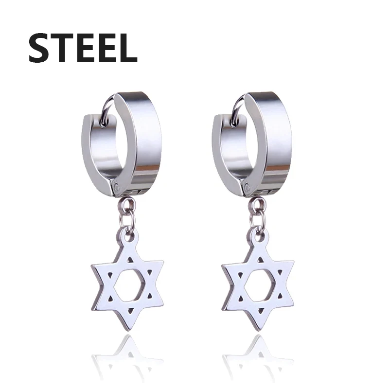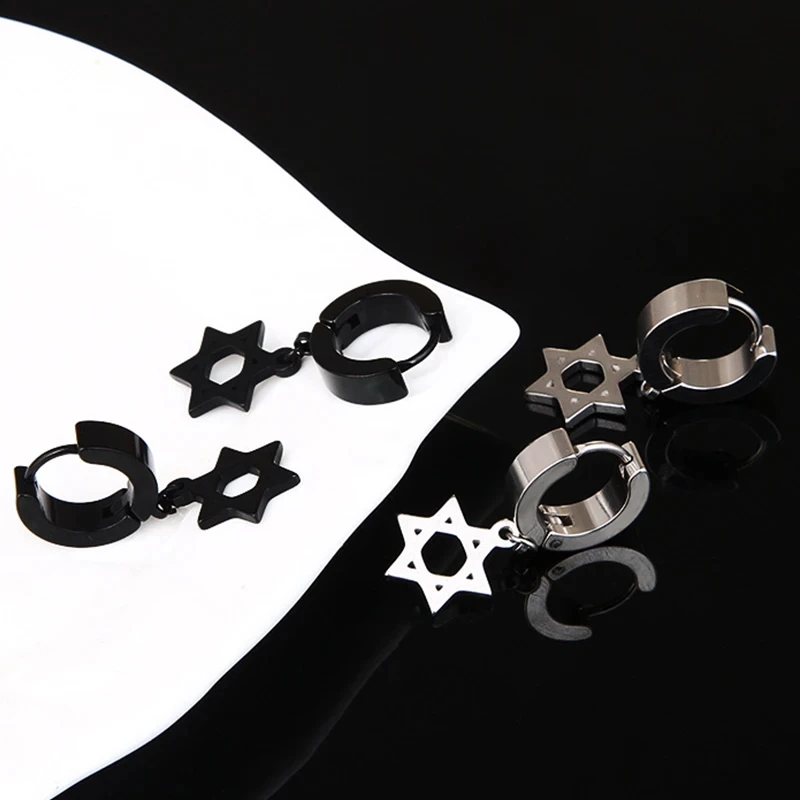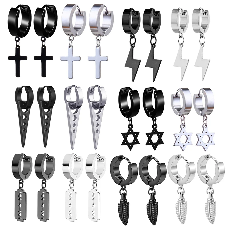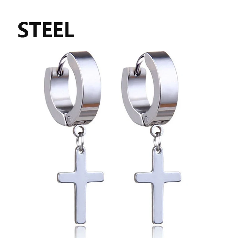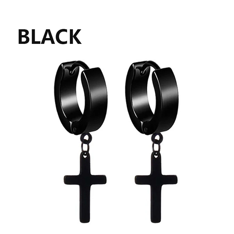 2pc Stainless Steel Cross Ear Earrings for Men and Women Punk Black Cartilage Earrings Round Street Hip Hop Rock Jewelry Gifts