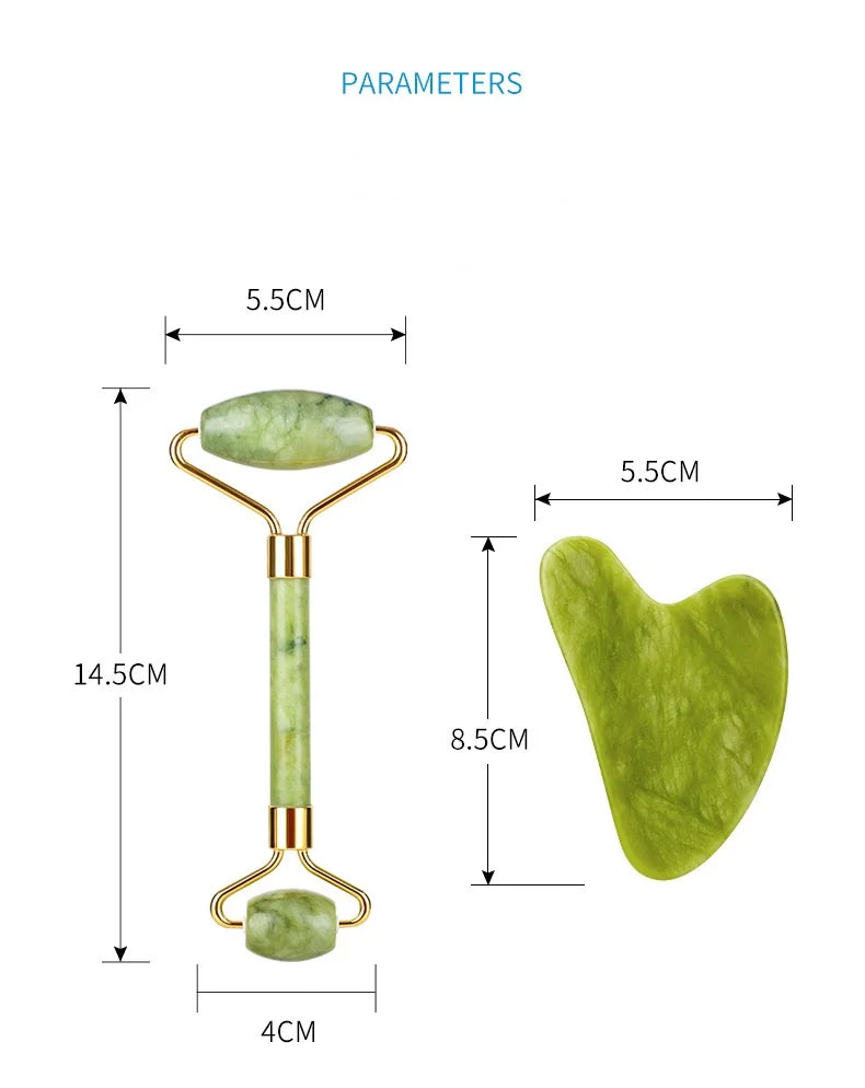2pcs Jade Massagers For Face Body Gua Sha Scraper Beauty Facial Roller Set Natural Gouache Stone Massage Slimming Skin Care Lift