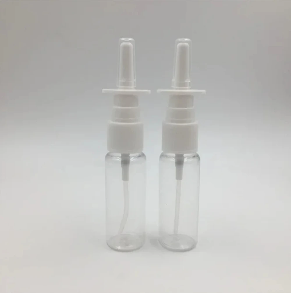 2Pcs/Lot 10ml 20ml 30ml Nasal Spray Bottle Plastic Nose Mist Sprayer Press Spray Head Empty Bottles Refillable Atomizer