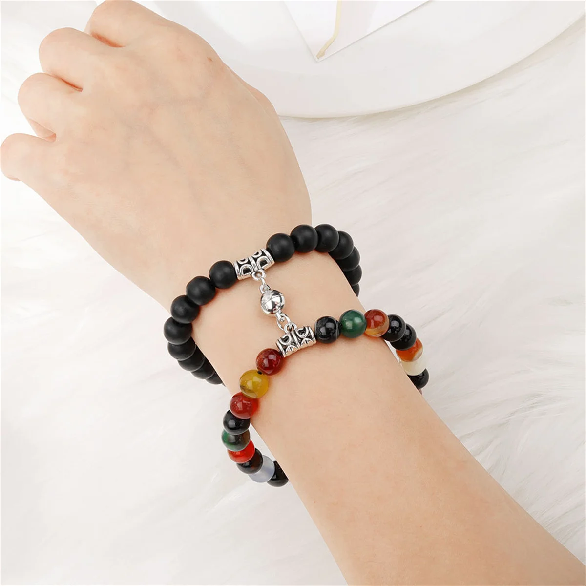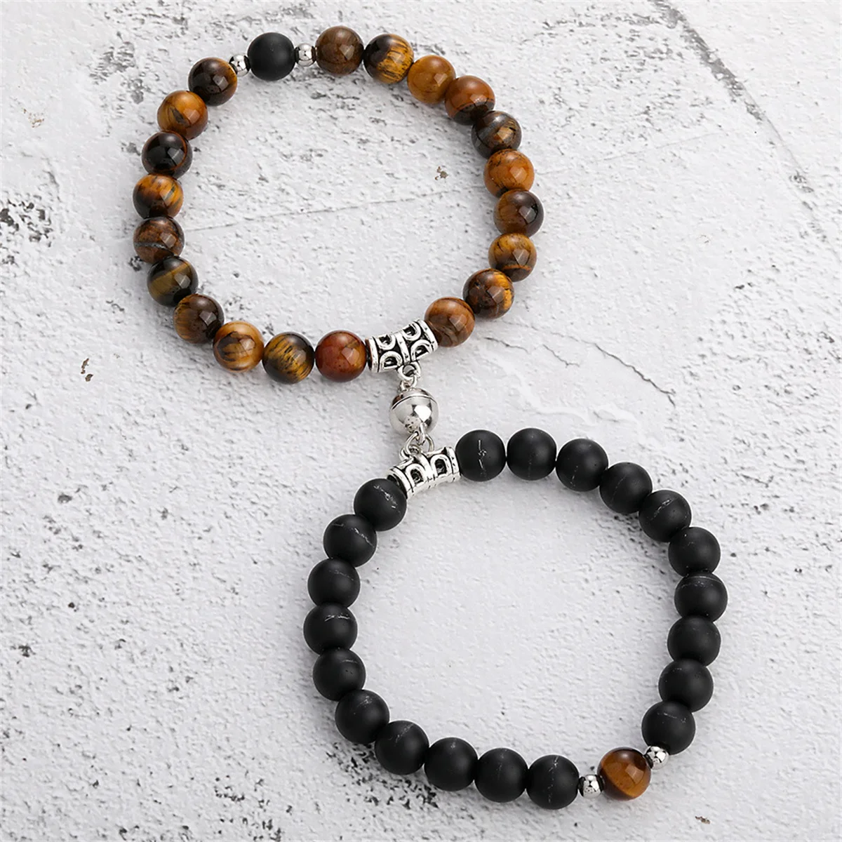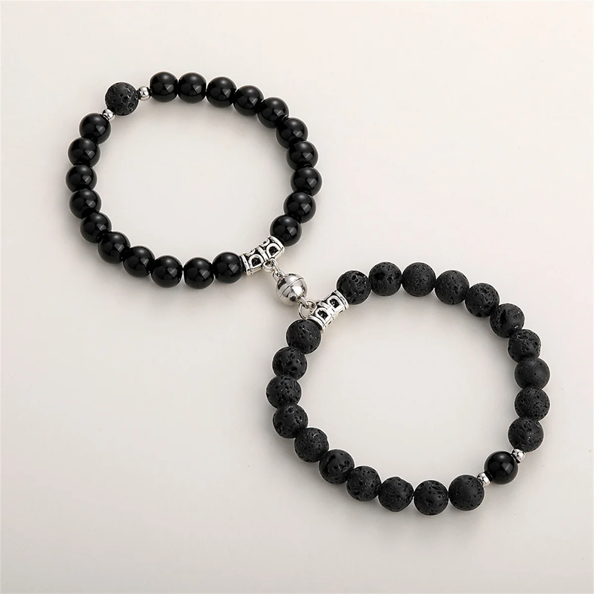 2pcs/set Natural Stone Beads Bracelet for Women Men Lovers Magnet Attraction Couple Distance Bracelets Best Friends Jewelry Gift