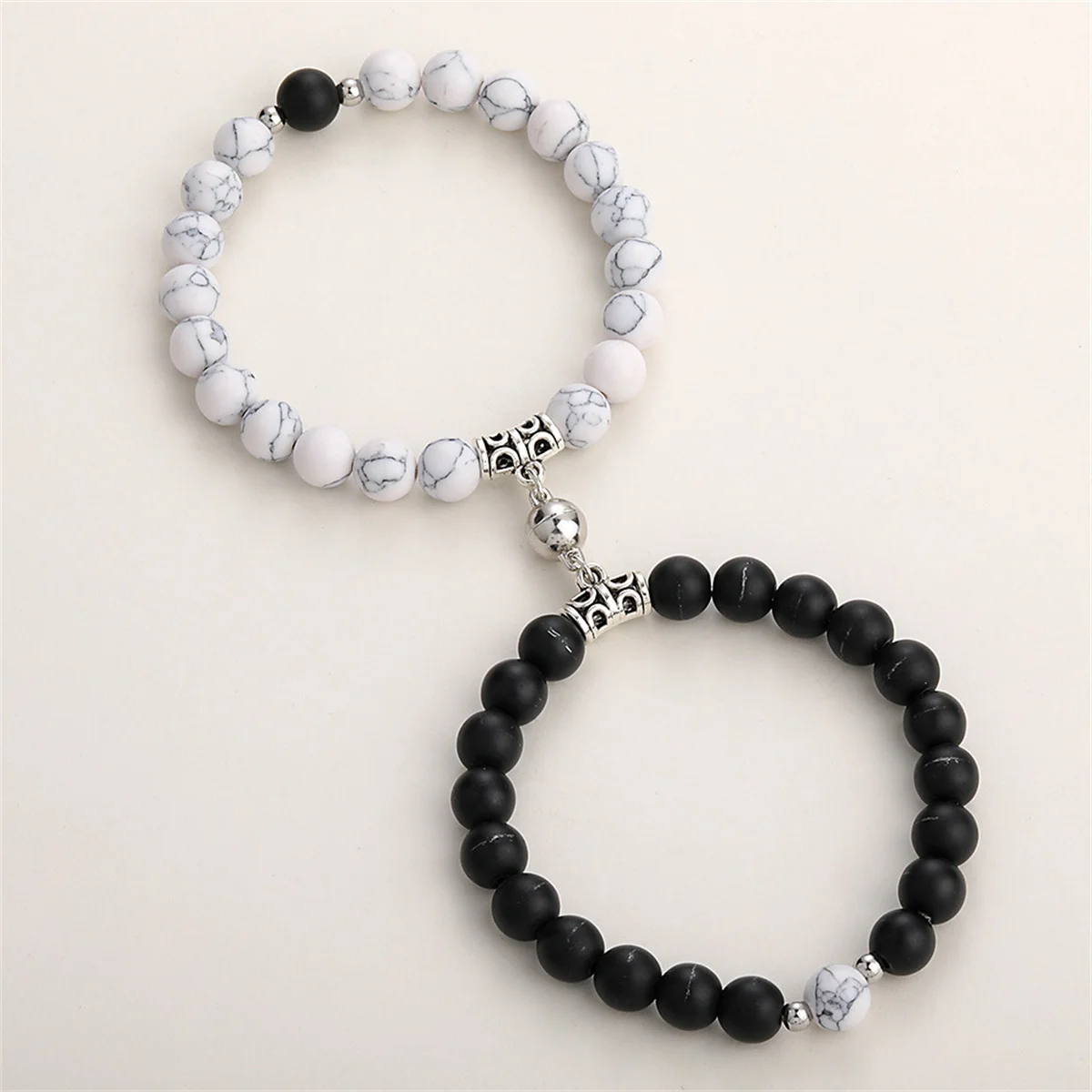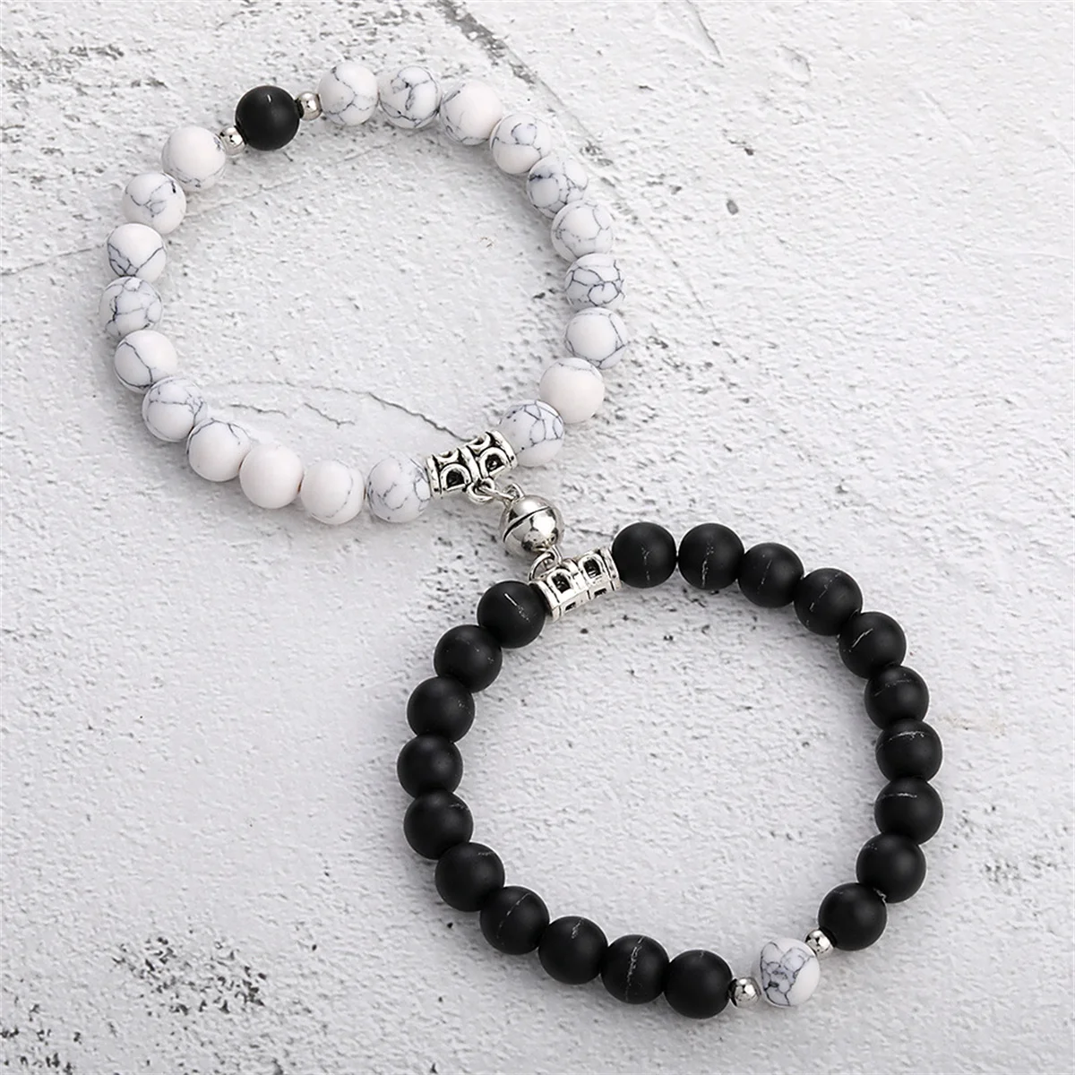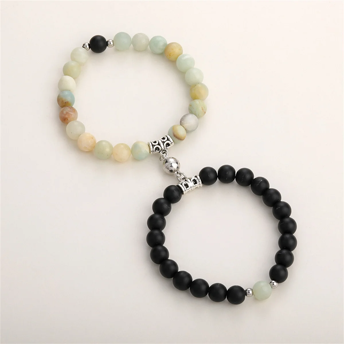 2pcs/set Natural Stone Beads Bracelet for Women Men Lovers Magnet Attraction Couple Distance Bracelets Best Friends Jewelry Gift