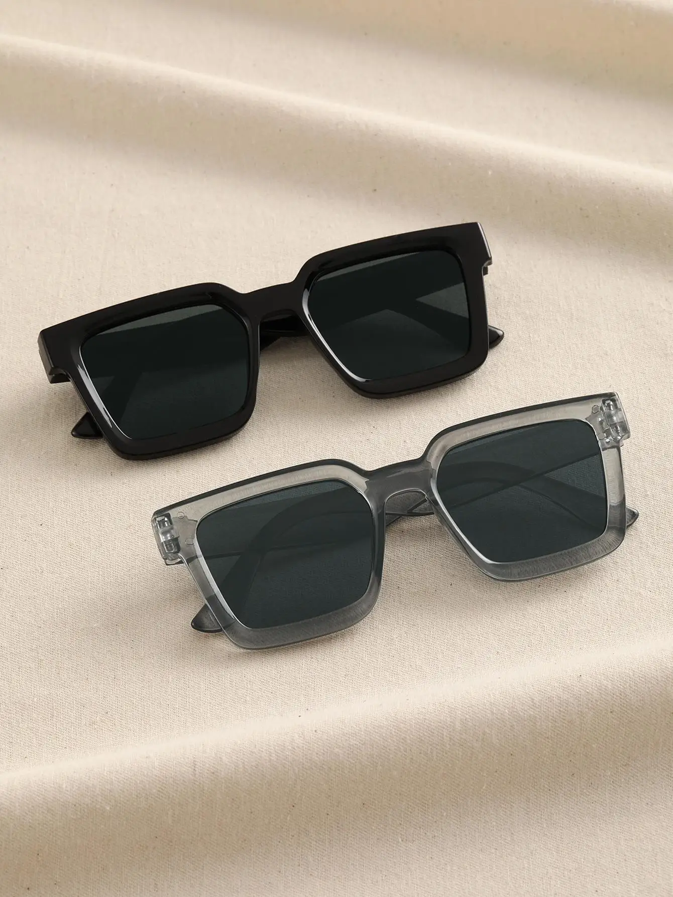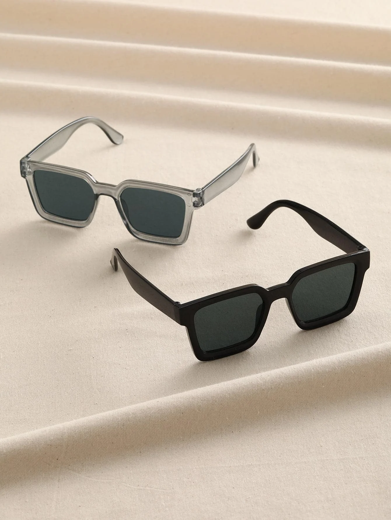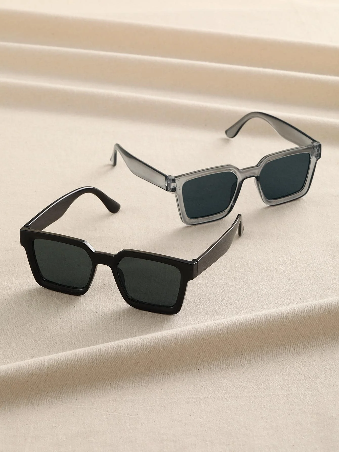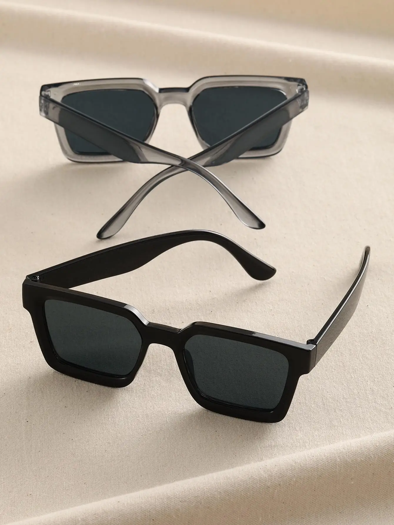 2pcs Women Men Square Frame Fashion Sunglasses For Vacation Driving UV400 Cycling Accessories