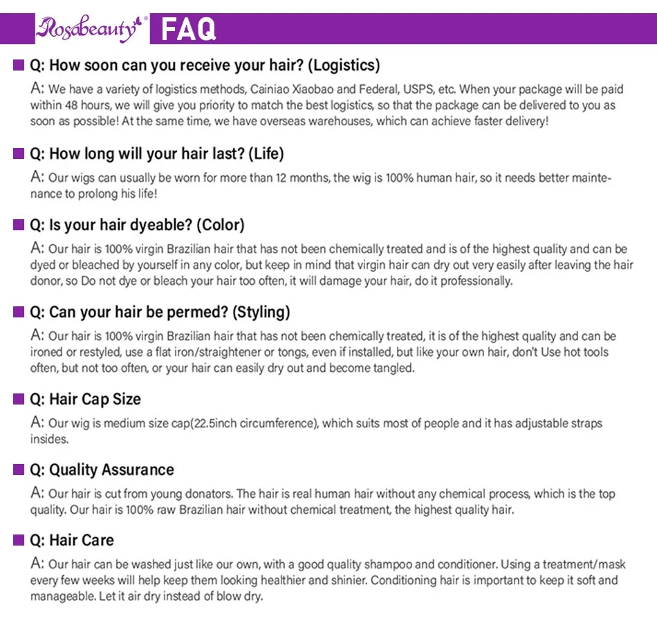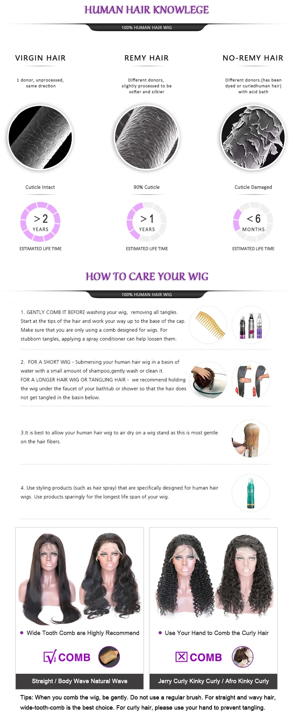 Hair Material:100% Unprocessed Brazilian Human Hair Wigs