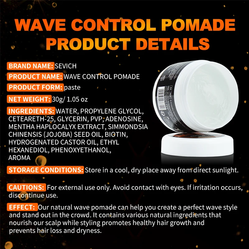 EFFECT: Our natural wave pomade can help you create a perfect wave style and stand out in the crowd. It contains various natural ingredients that nourish our scalp while styling promotes healthy hair growth and prevents hair loss and dryness.