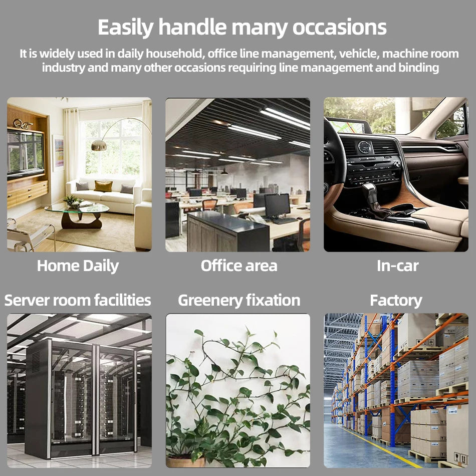 ►About Us Organizing your cords and cables has never been easier! Simply peel and stick the adhesive clips to any surface or bundle cables together to apply the cable sleeves and cable ties. Get such great tool and get rid of messy cables!