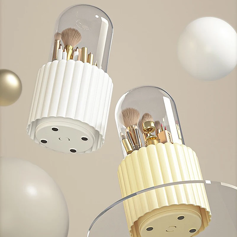 360° Rotating Makeup Brushes Holder With Lid Lipstick Organizer Cosmetic Storage Make Up Tools Box Jewelry Pencil Case Container