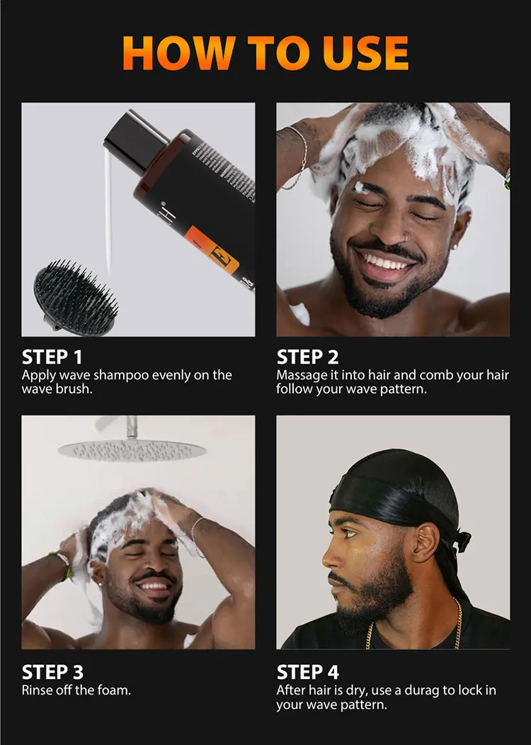 360 Wave Hair Wax Shampoo Kit Edge Control Gel Pomade Curly Hair Cream for African Men Grease Layered Style With Brush Tool