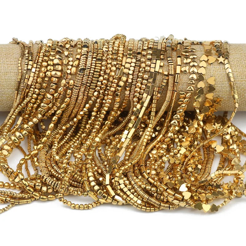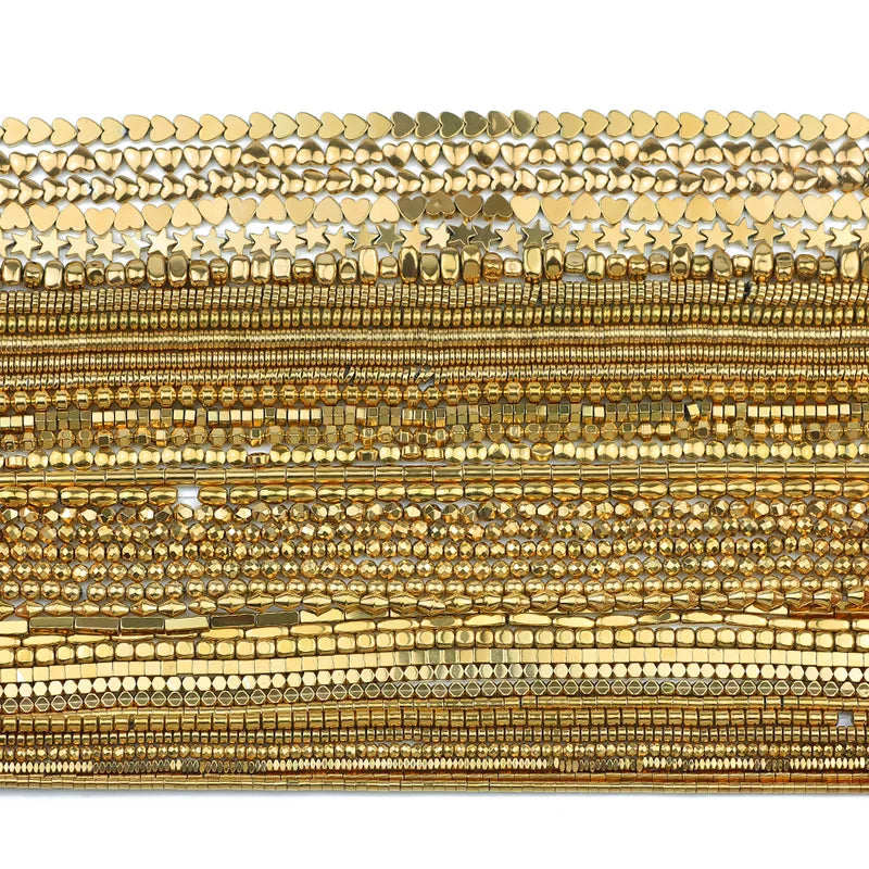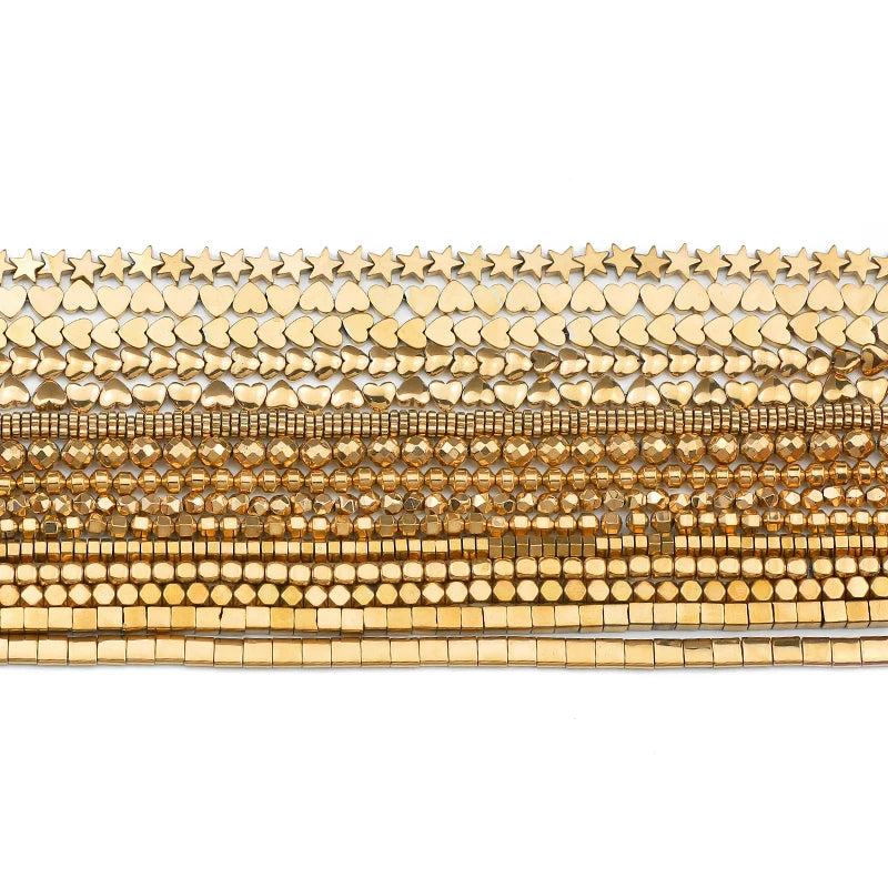 3A+ Retention Color Various Shapes Star Heart Hematite Natural Stone Plated Loose Gold Beads For Jewelry Making Diy Bracelets