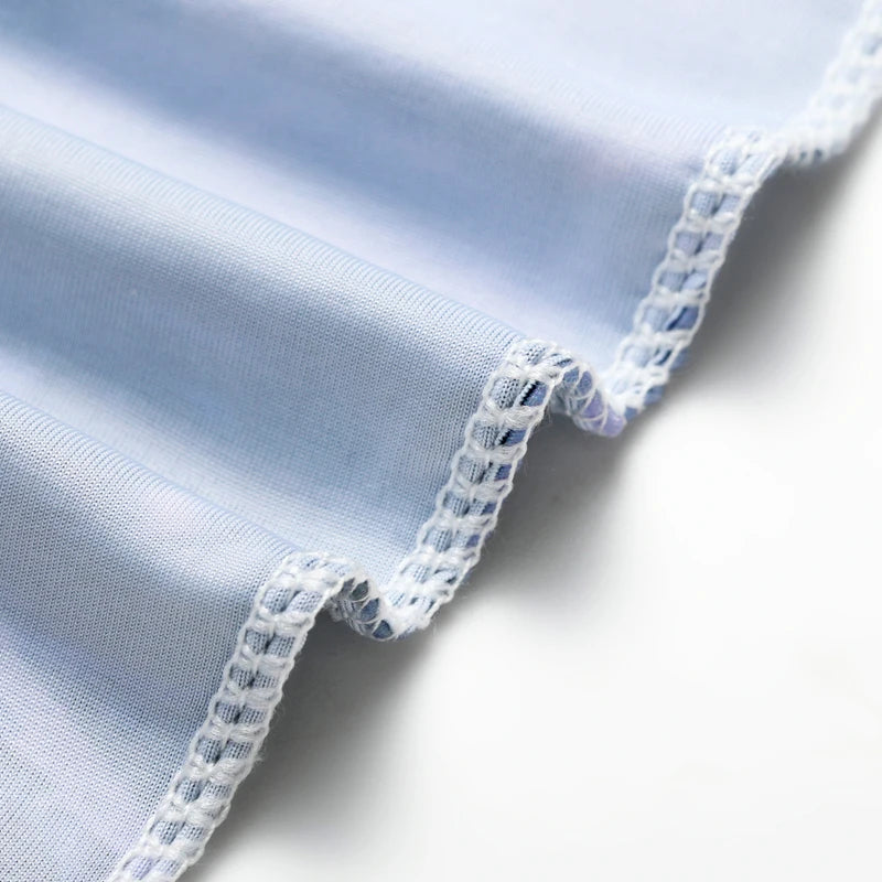 It is made of polyester ice silk fabric, which has a certain cold feeling. The fabric is soft and comfortable, and is skin-friendly without peculiar smell.