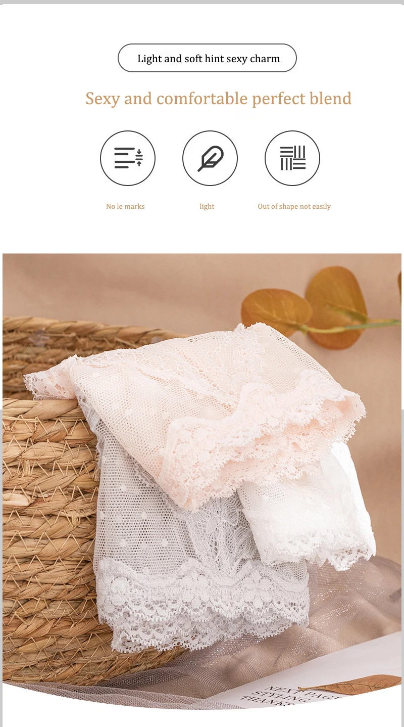 3pcs/lot Summer loose lace ladies panties, soft mesh underwear, sexy temptation briefs, seamless mid-waist cotton crotch panties