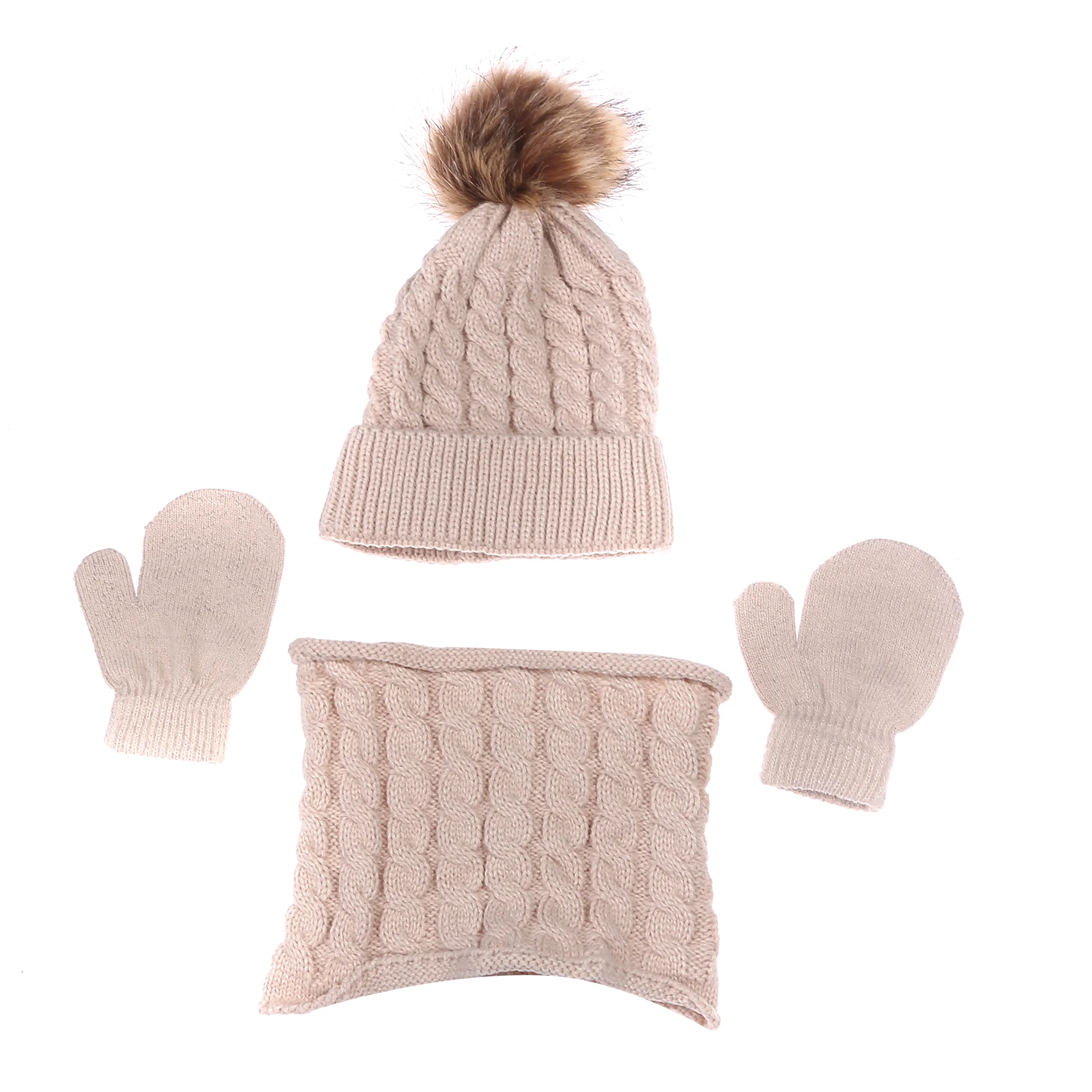 3PCS/Set Kid Winter Hat Scarf Mittens Set Toddler Knitted Girls Children Skin-Friendly Neck Warmer Boys Wool Outdoor Warm Gloves