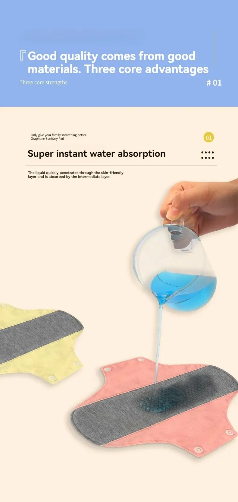 3Pcs Washable Graphene Menstrual Cloth Pads Set 19G 20*23Cm Reusable Soft Panty Liner Sanitary Pad Women Period Panties Pad
