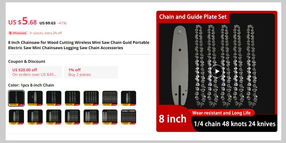 4/6/8/10 Inch 1/4 Chainsaw Chain Guide Portable Electric Saw Mini Chainsaw Logging Saw Blade Pruning Chain Saw Chain Accessories