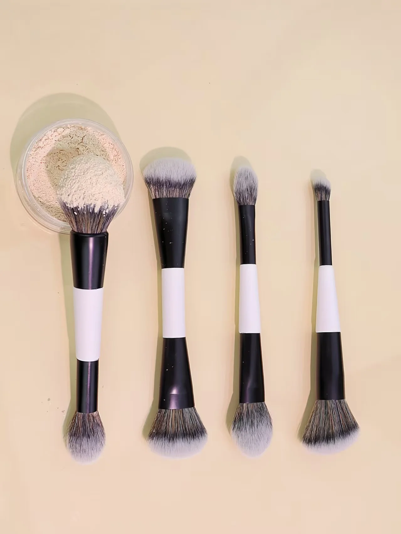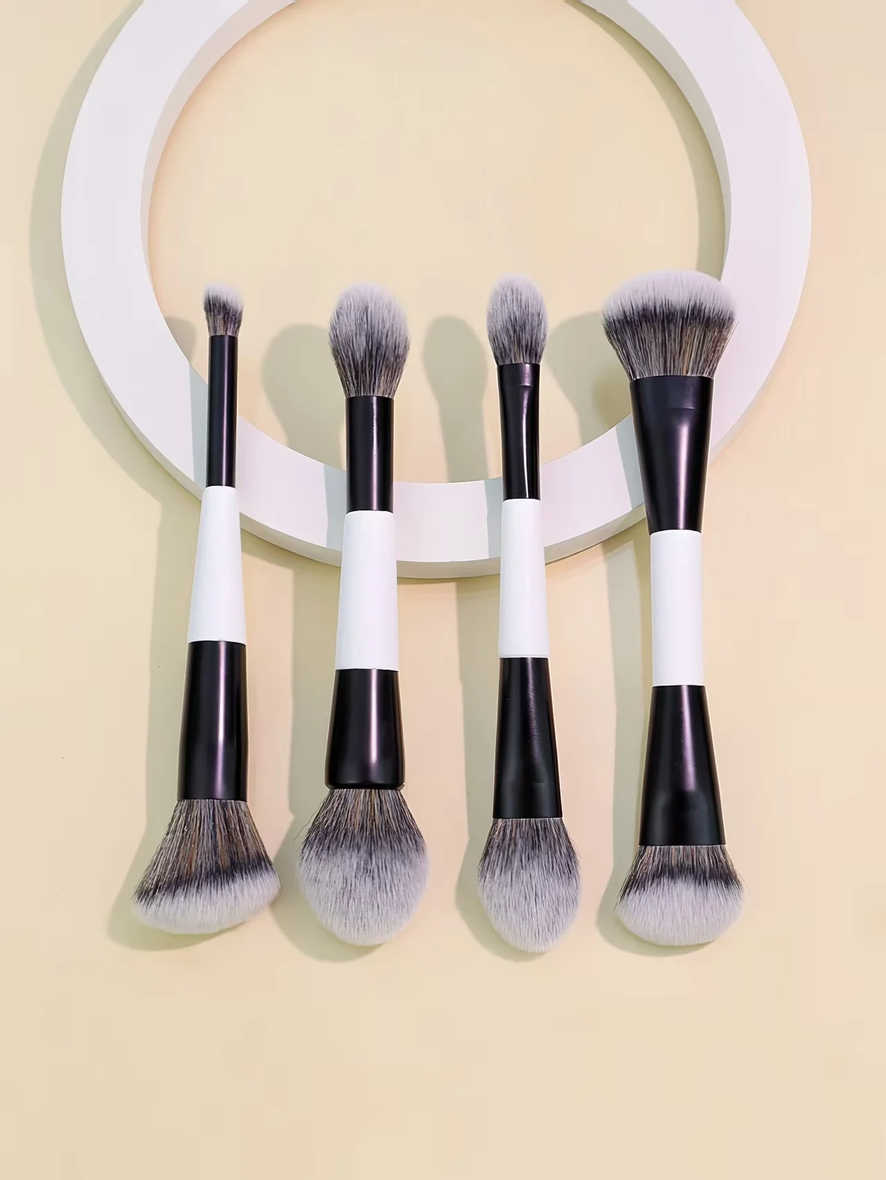 4 Double-Headed Makeup Brushes, Multi-Functional Makeup Brush, Blush Brush, Foundation Brush, Loose Powder Brush, Highlight Brush, Nose Shadow Brush, Concealer Brush, Blush Brush, Gift for Ladies and Girls