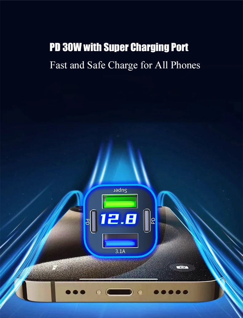 4 in 1 USB C Car Charger Dual PD Super Fast Charging Adapter for iPhone 15 Pro Max 14 Plus Huawei Oneplus Samsung OPPO Vivo