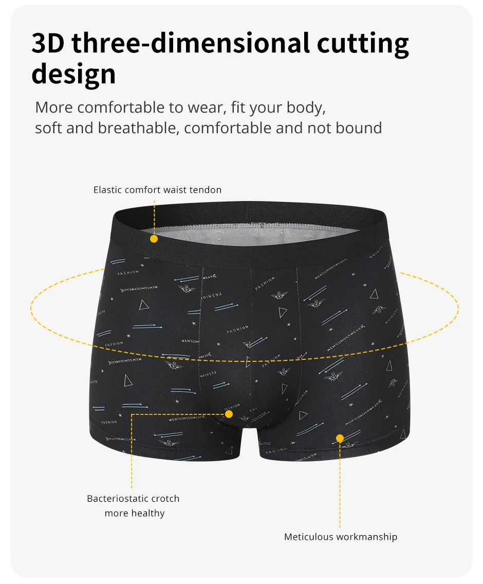 4-piece MEN'S Boyshort Young Men Printed Comfortable Underwear for Middle-aged and Elderly Men to Increase 5XL/6XL Boyshort.
