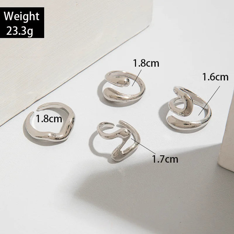 4Pcs/Set Fashion Silver Color Irregular Geometric Open Rings For Women Men Punk Metal Adjustable Knuckle Joint Ring Jewelry Gift