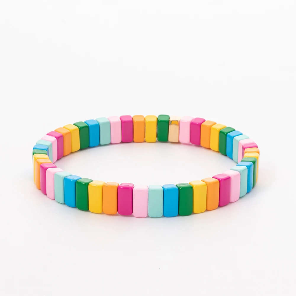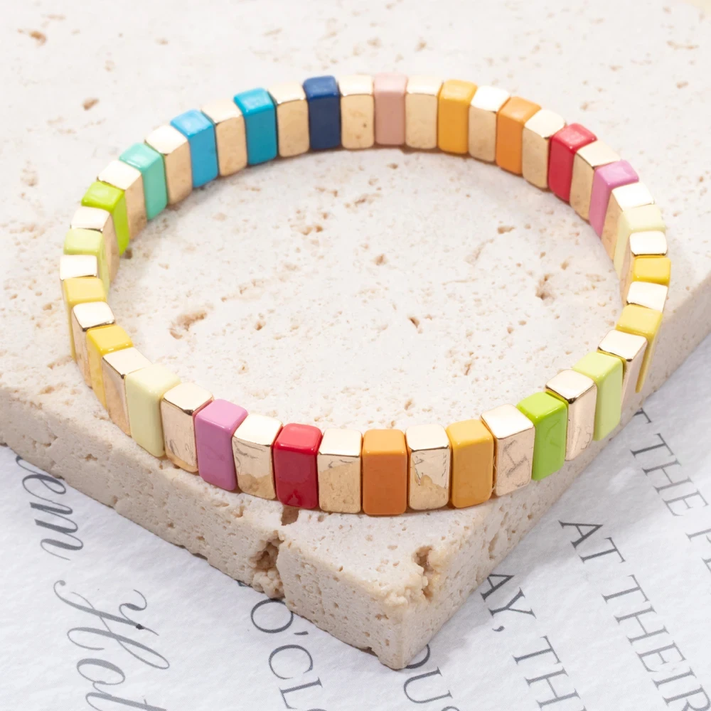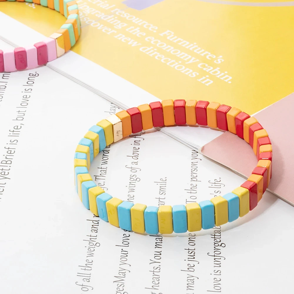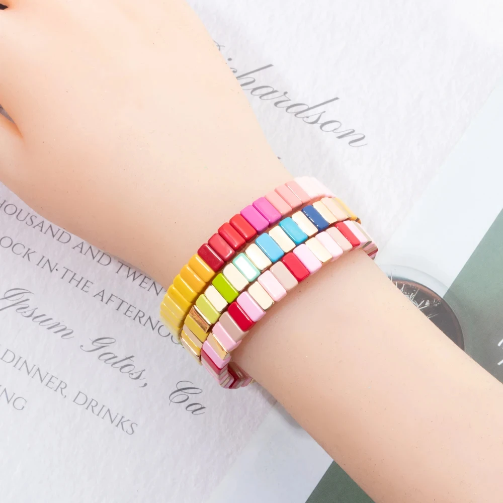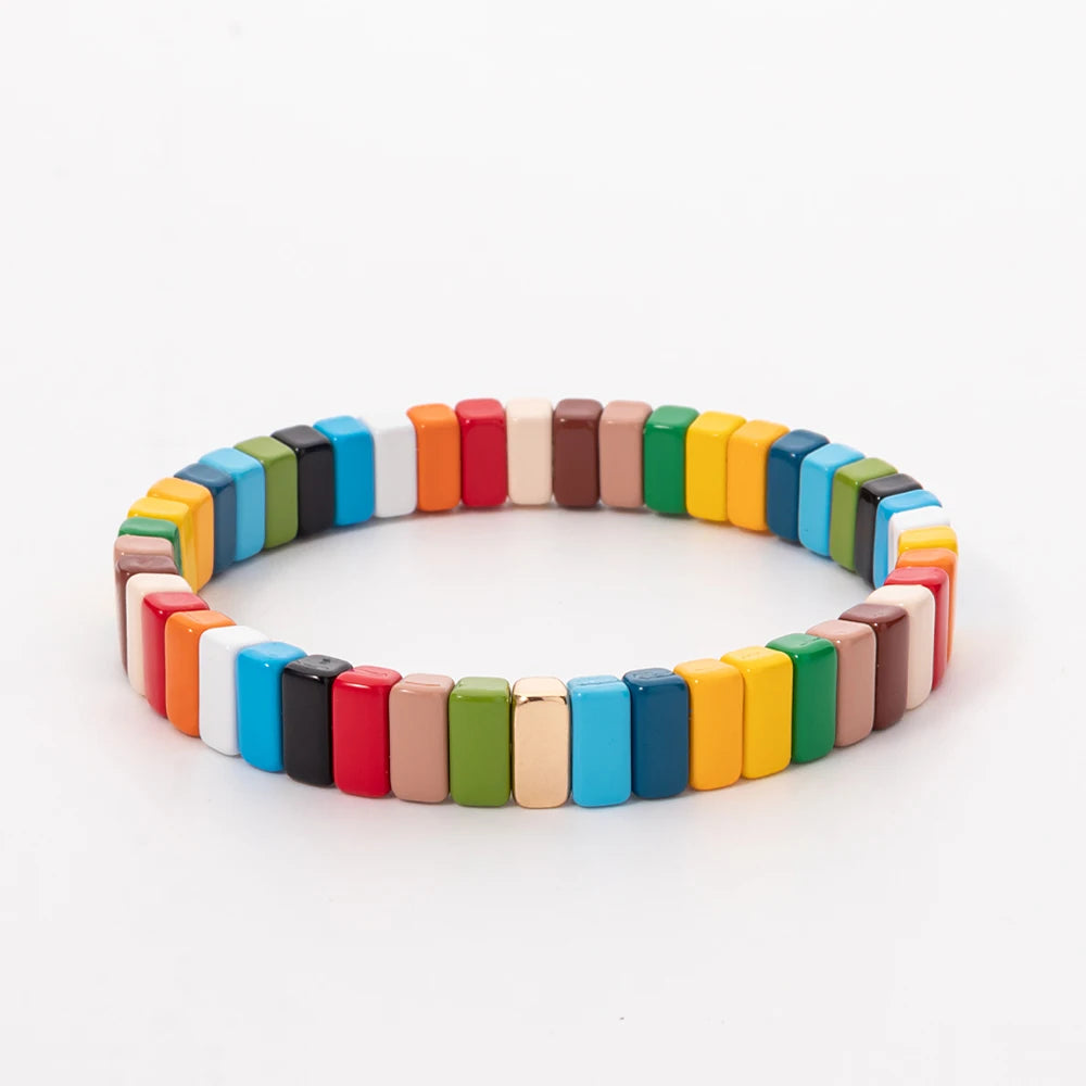 4X8MM Enamel Bracelets Wholesale Colorful Elastic Bangle Handmade Rainbow Beads Jewelry