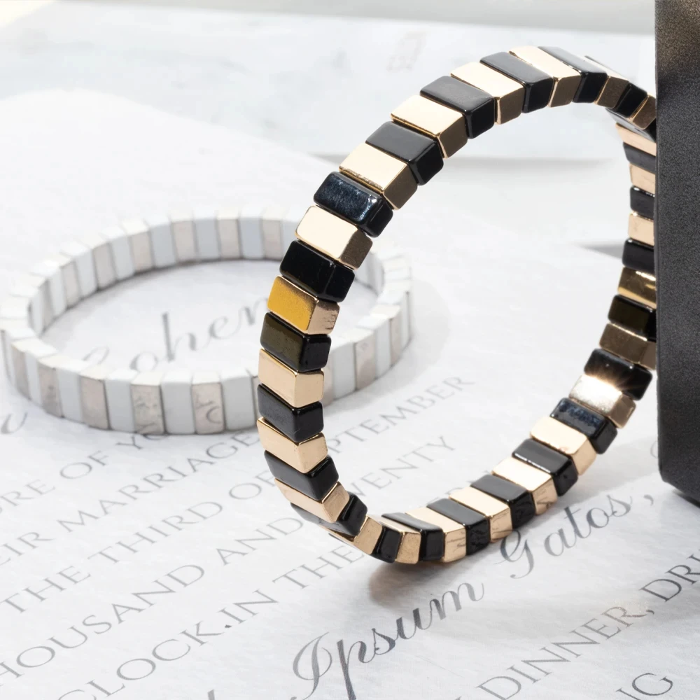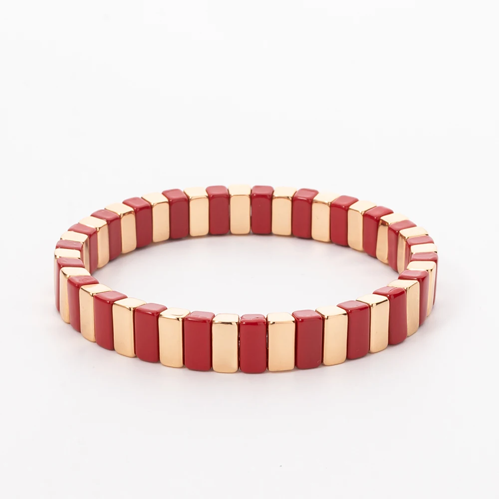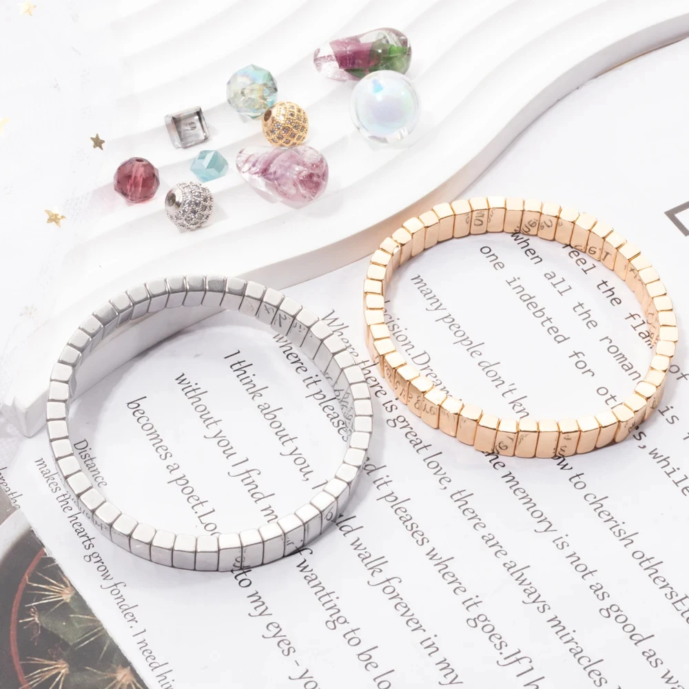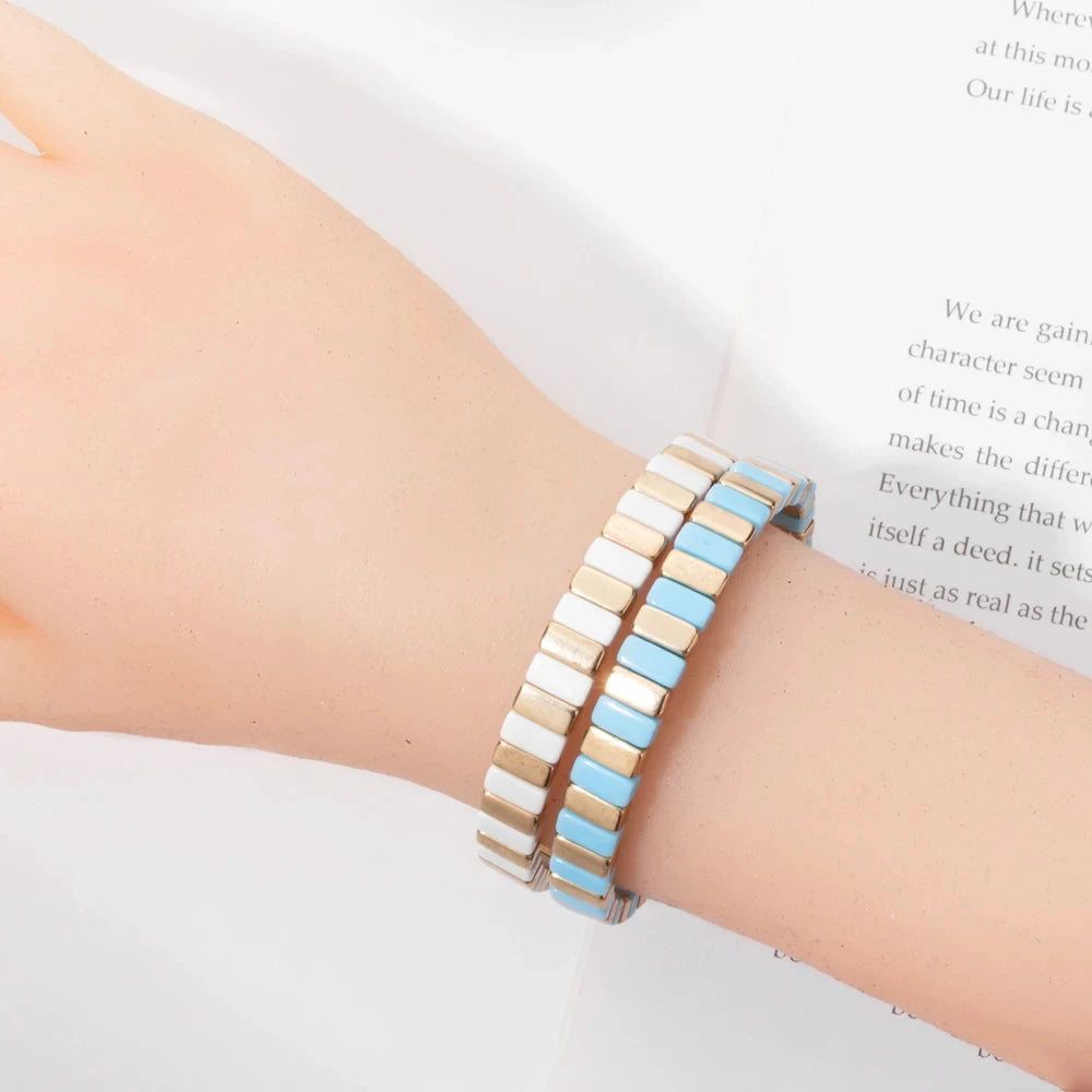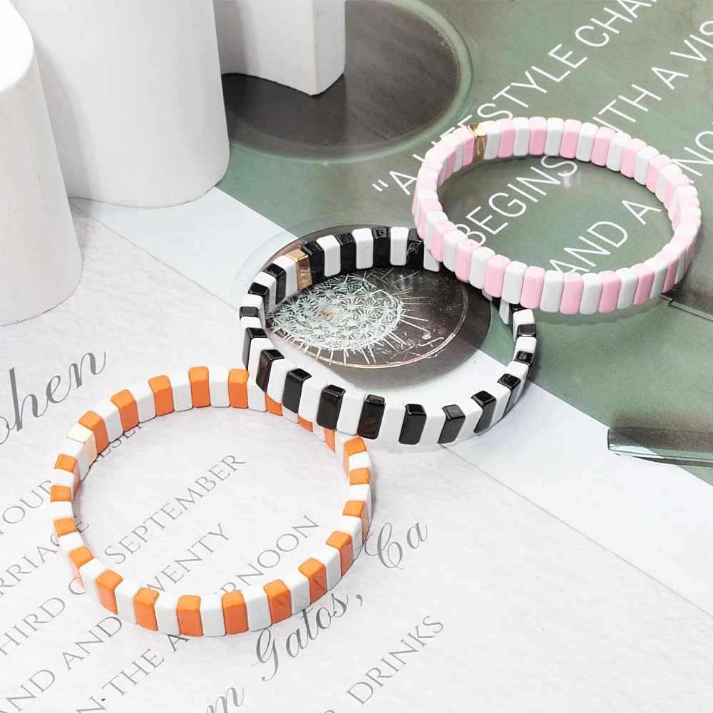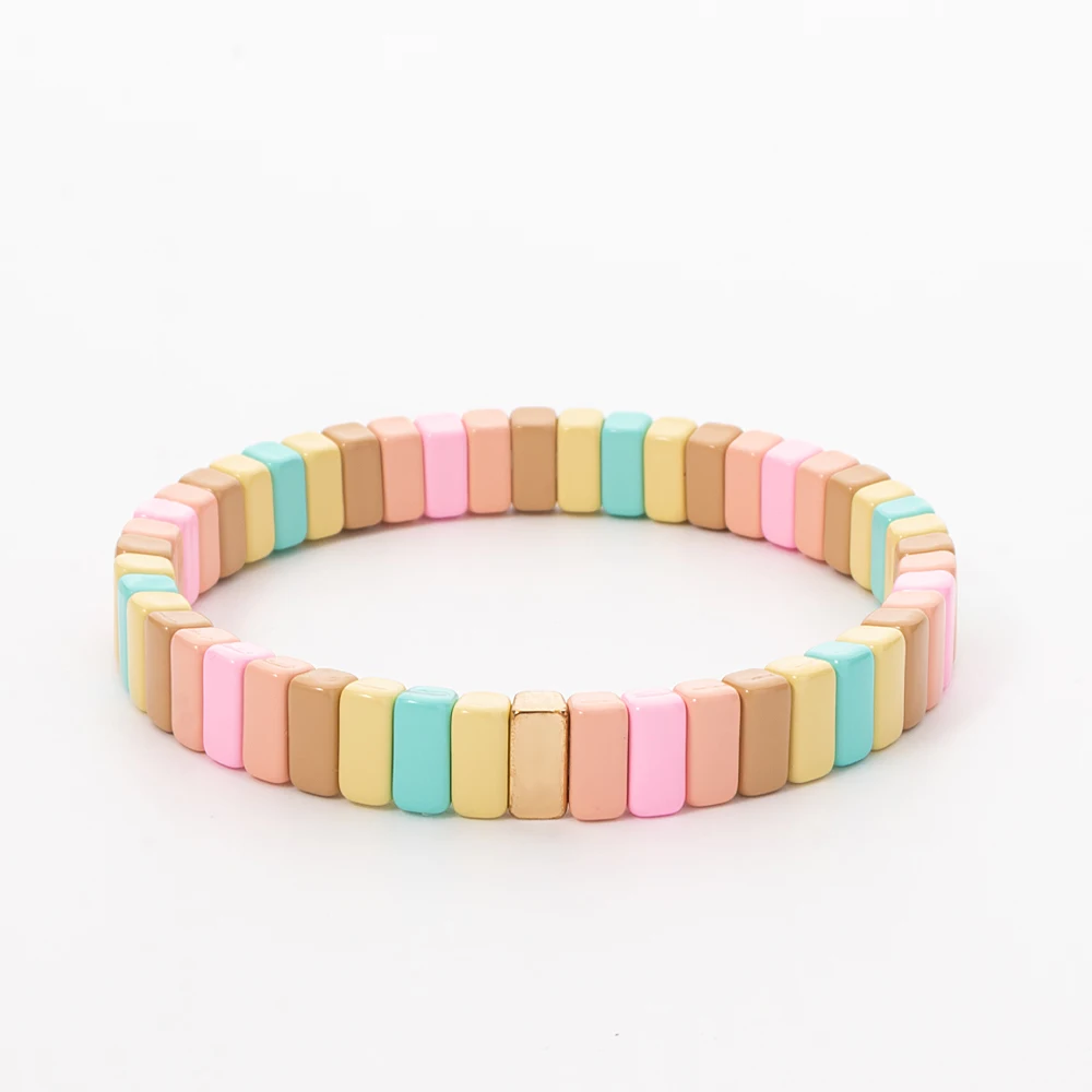 4X8MM Enamel Bracelets Wholesale Colorful Elastic Bangle Handmade Rainbow Beads Jewelry