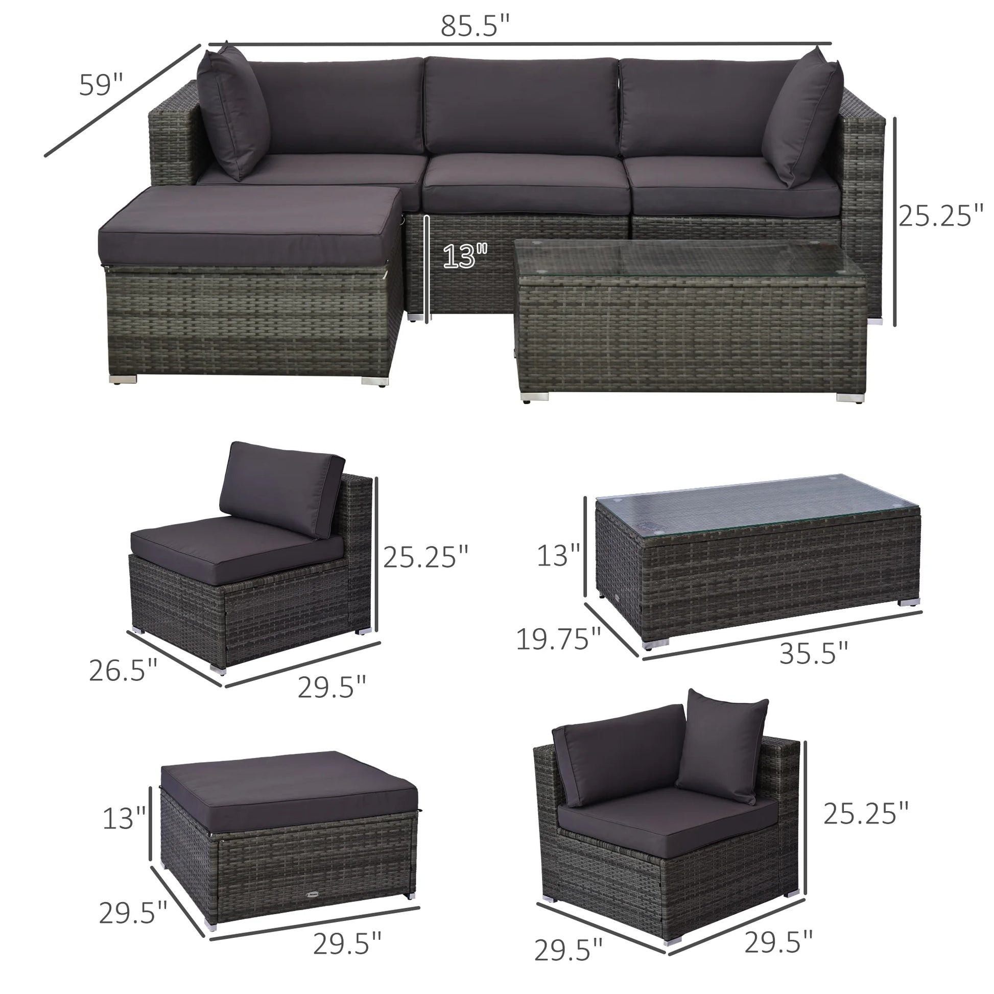 5 件套 Rattan Wicker Sofa Set Outdoor Patio Garden Sectional Furniture Cushioned