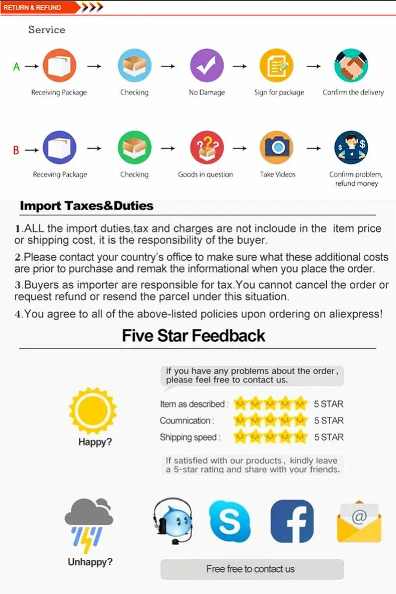 3.Your satisfaction and positive feedback is very important to us. Please leave positive feedback and 5 stars if you are satisfied with our items and services.