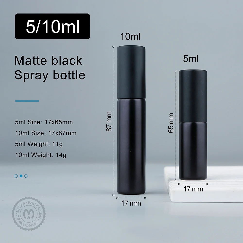 50/100Pcs 5ml 10ml Matte black spray bottle Atomizer Empty Perfume Sample Bottles Custom LOGO Pay Extra